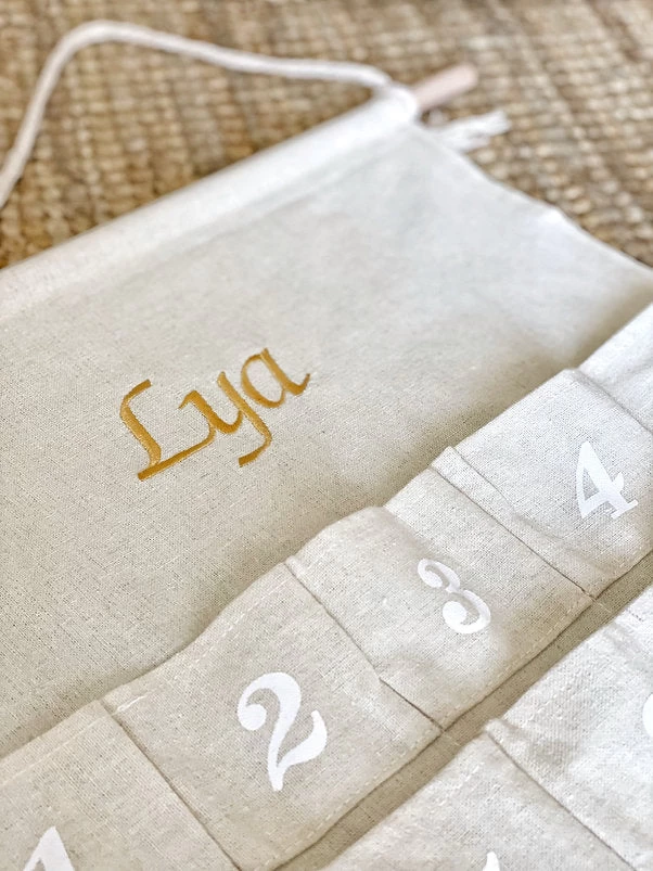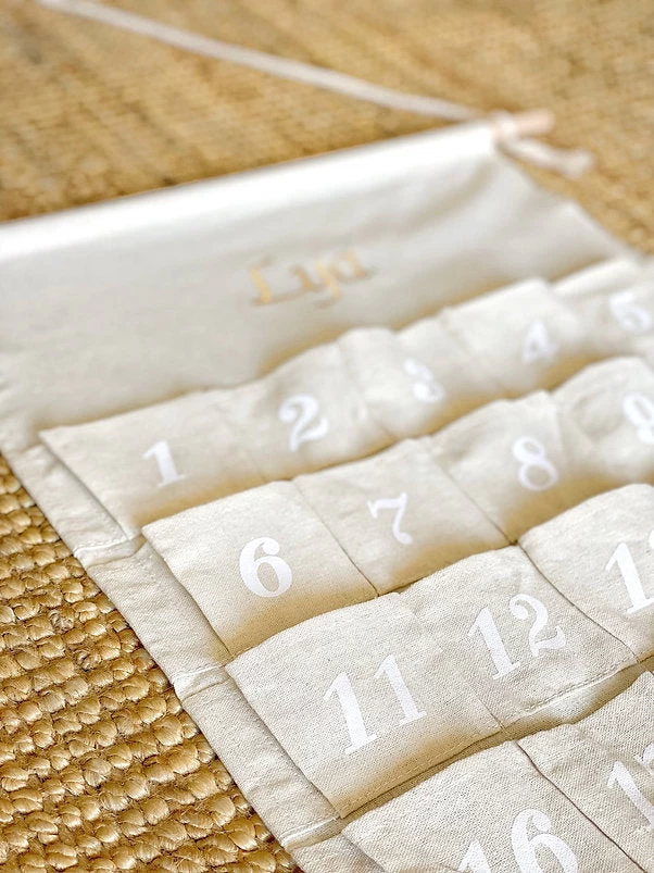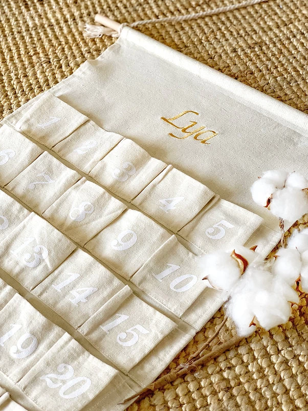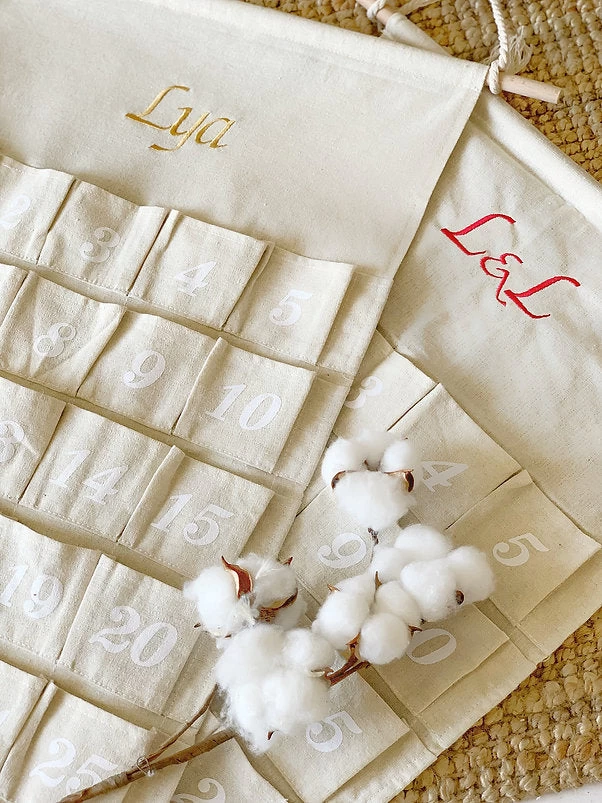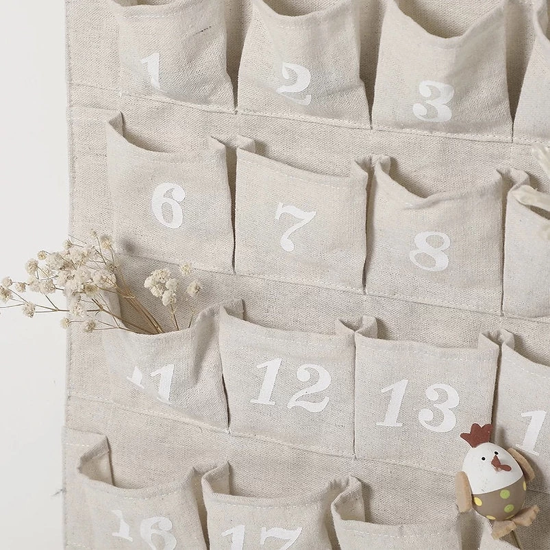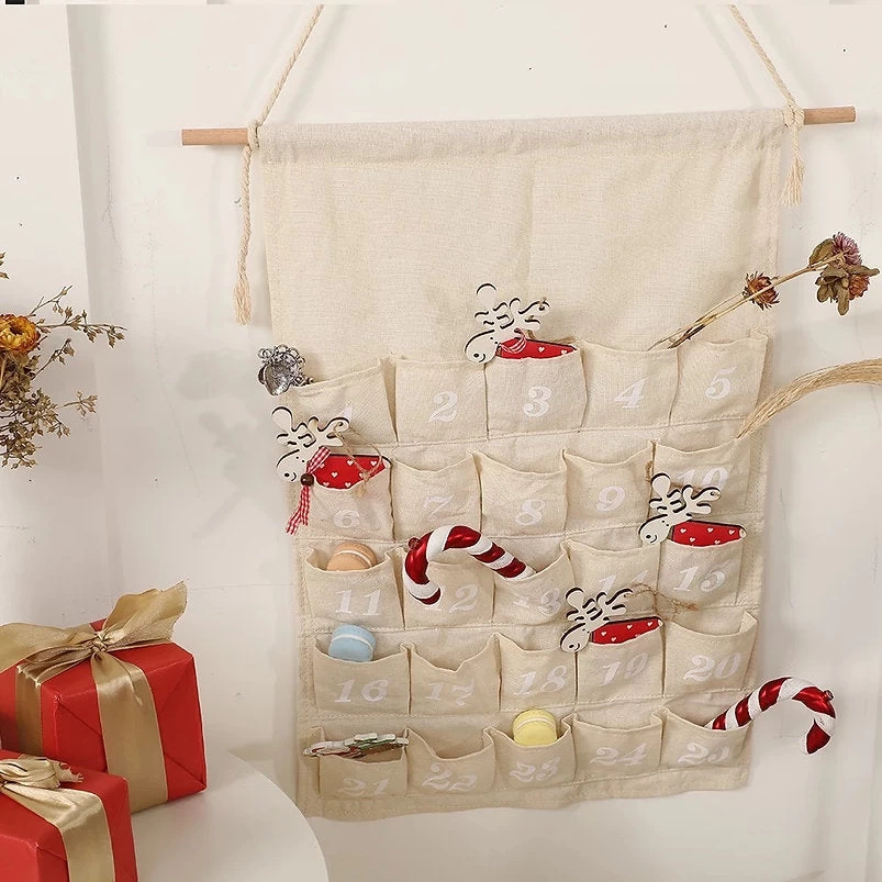 Avec le maxi Calendrier de l’Avent en coton, on lancer un compte à rebours jusqu’à Noël! Réutilisable chaque année, vous pourrez y glisser chaque jour une petite surprise ou friandise. Vos enfants vont adorer! Il dispose d’une tige en bois et d’un cordon ajustable pour que vous puissiez l’accrocher facilement dans une pièce de votre maison.