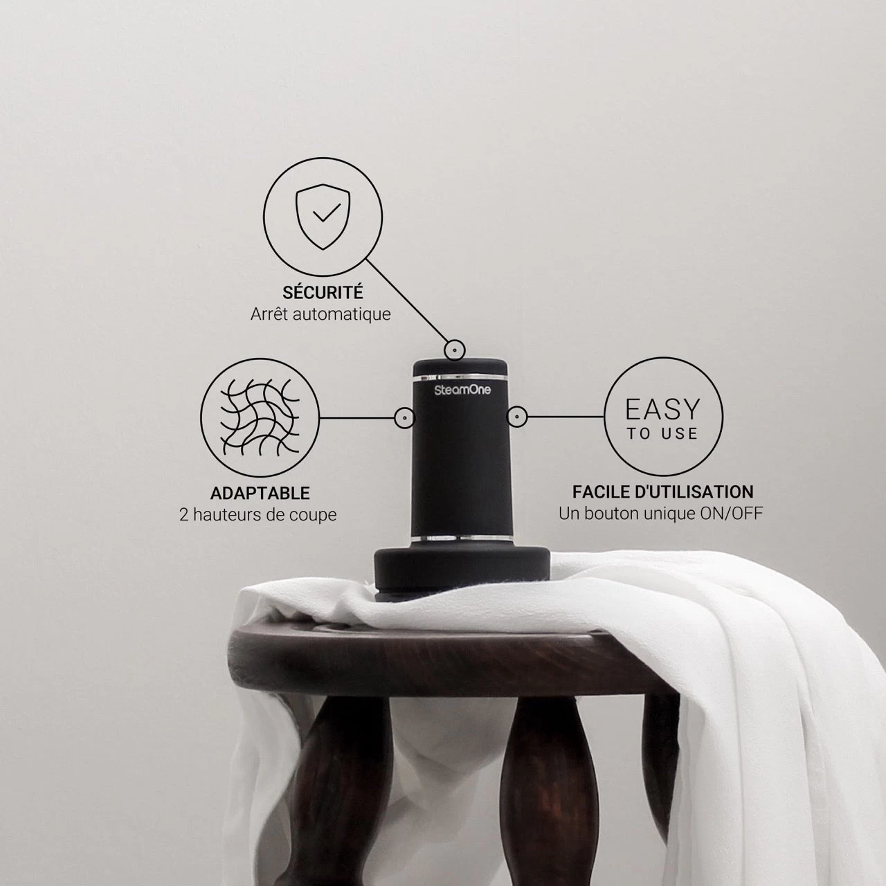 Rechargeable, facile à manipuler et simple à utiliser, il a été conçu par SteamOne pour enlever facilement les peluches de tous les types de tissus.