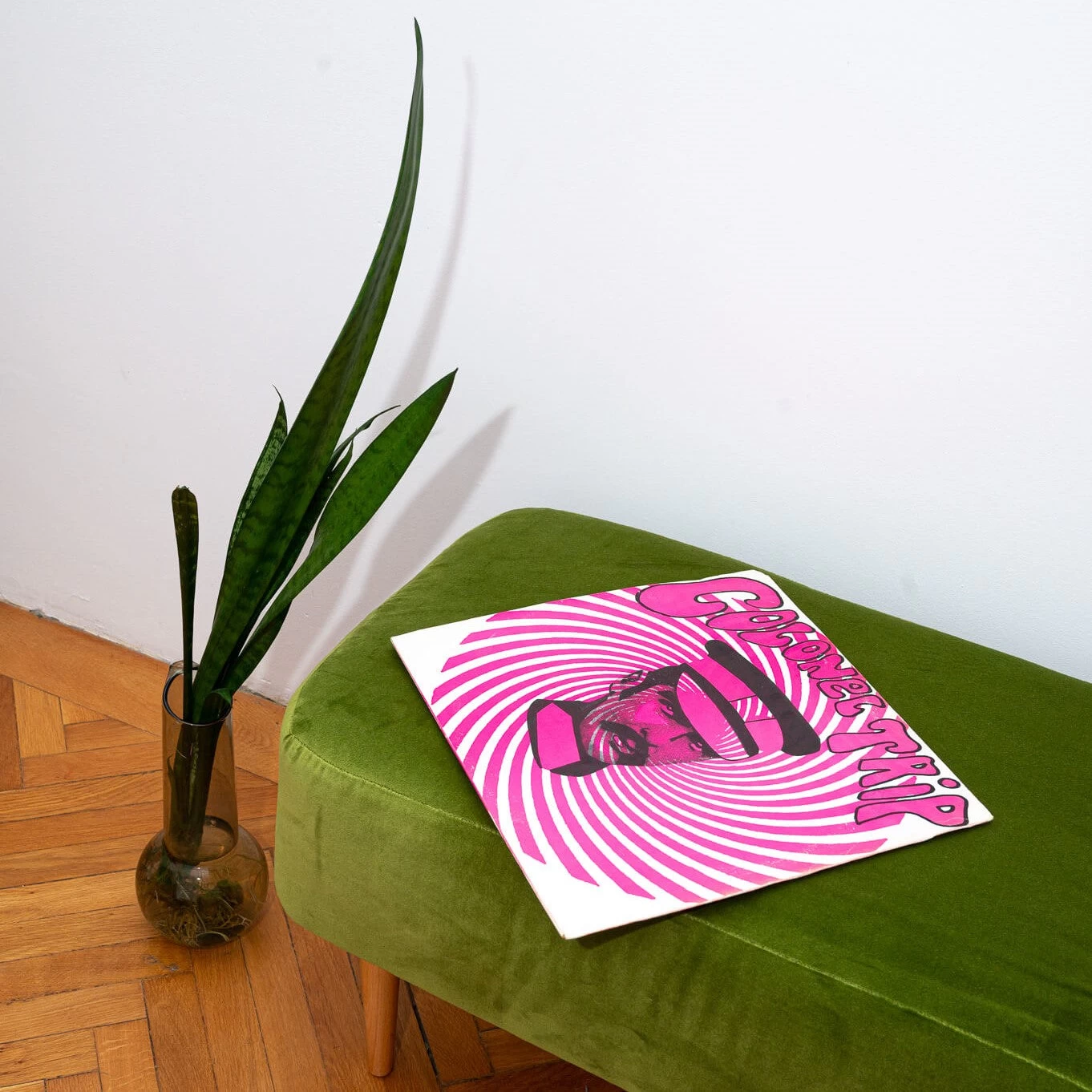 – pour le tapissage, l’utilisation d’une chute de tissus d’ameublement chinée à Paris, ici de la marque CASAL