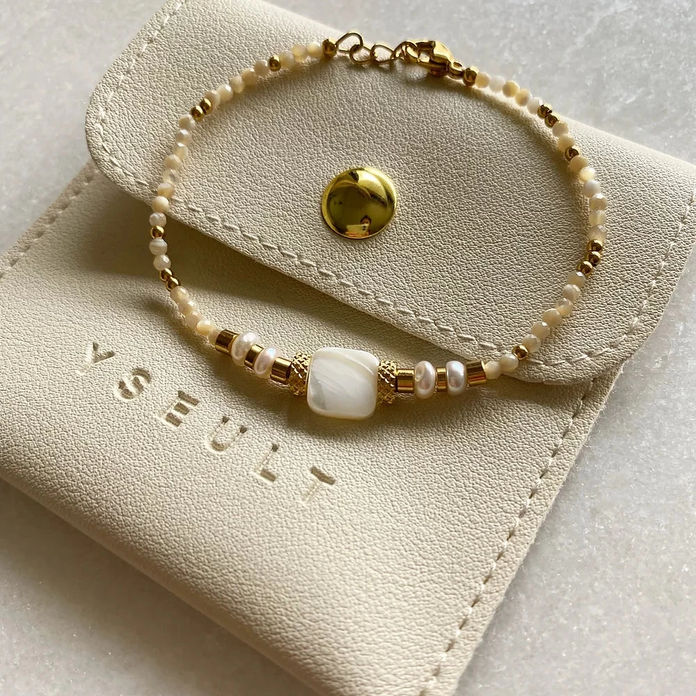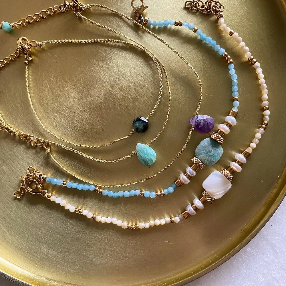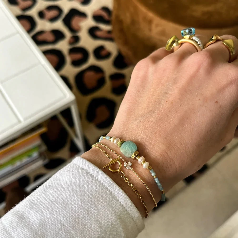 Bracelet en acier doré inoxydable & turquoise ou nacre