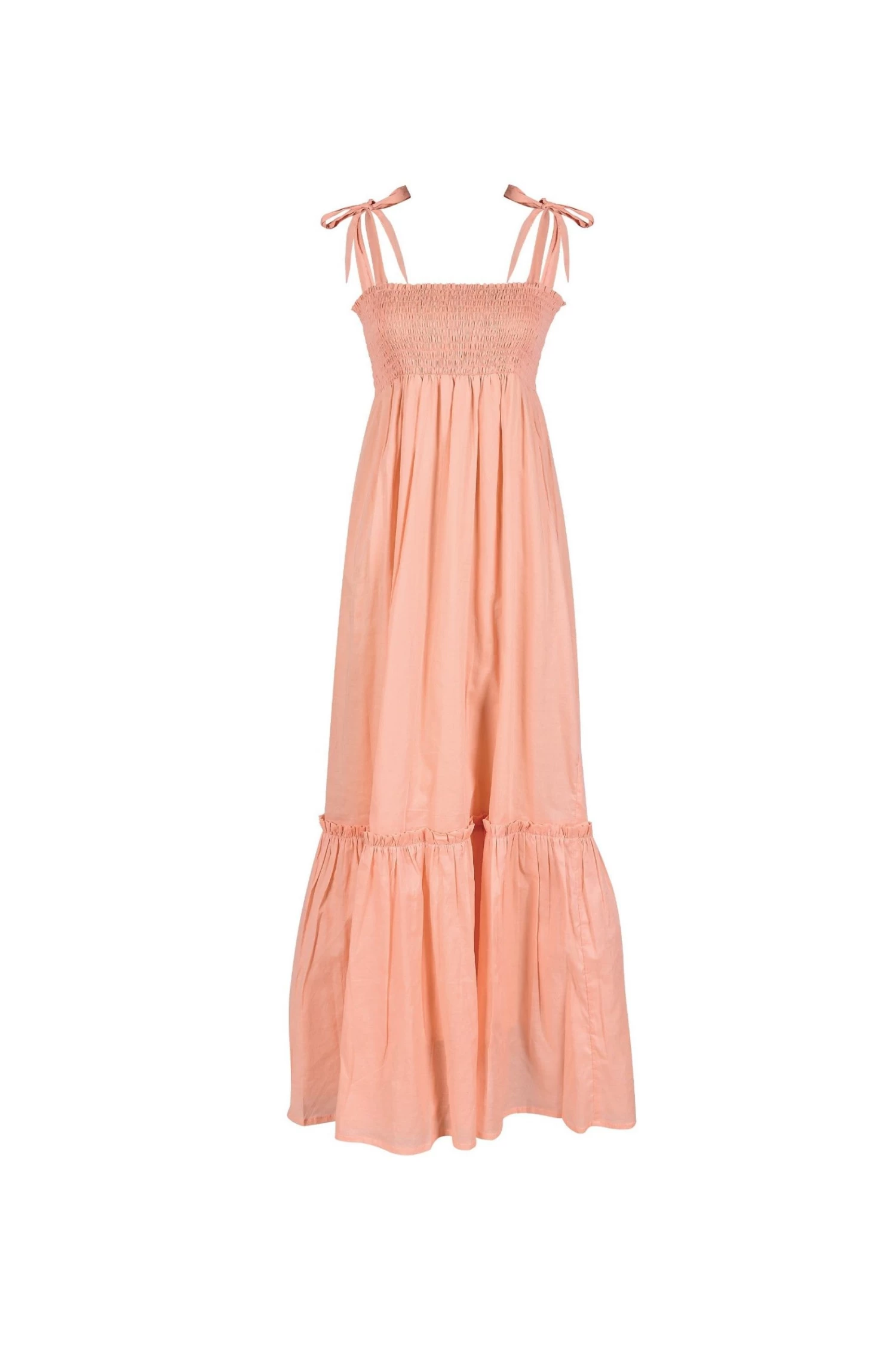 « Avec Bruno, vous ferez une déclaration simple mais très désirable. La coupe flatteuse de ce maxi met en valeur la silhouette féminine avec un corsage smocké doté de deux bretelles à nouer. La jupe est froncée au-dessus de la taille, ce qui lui confère une coupe fluide, avec un panneau plissé sur l’ourlet de la longueur des chevilles. Portez-la avec des chaussures à talons ou des bottes