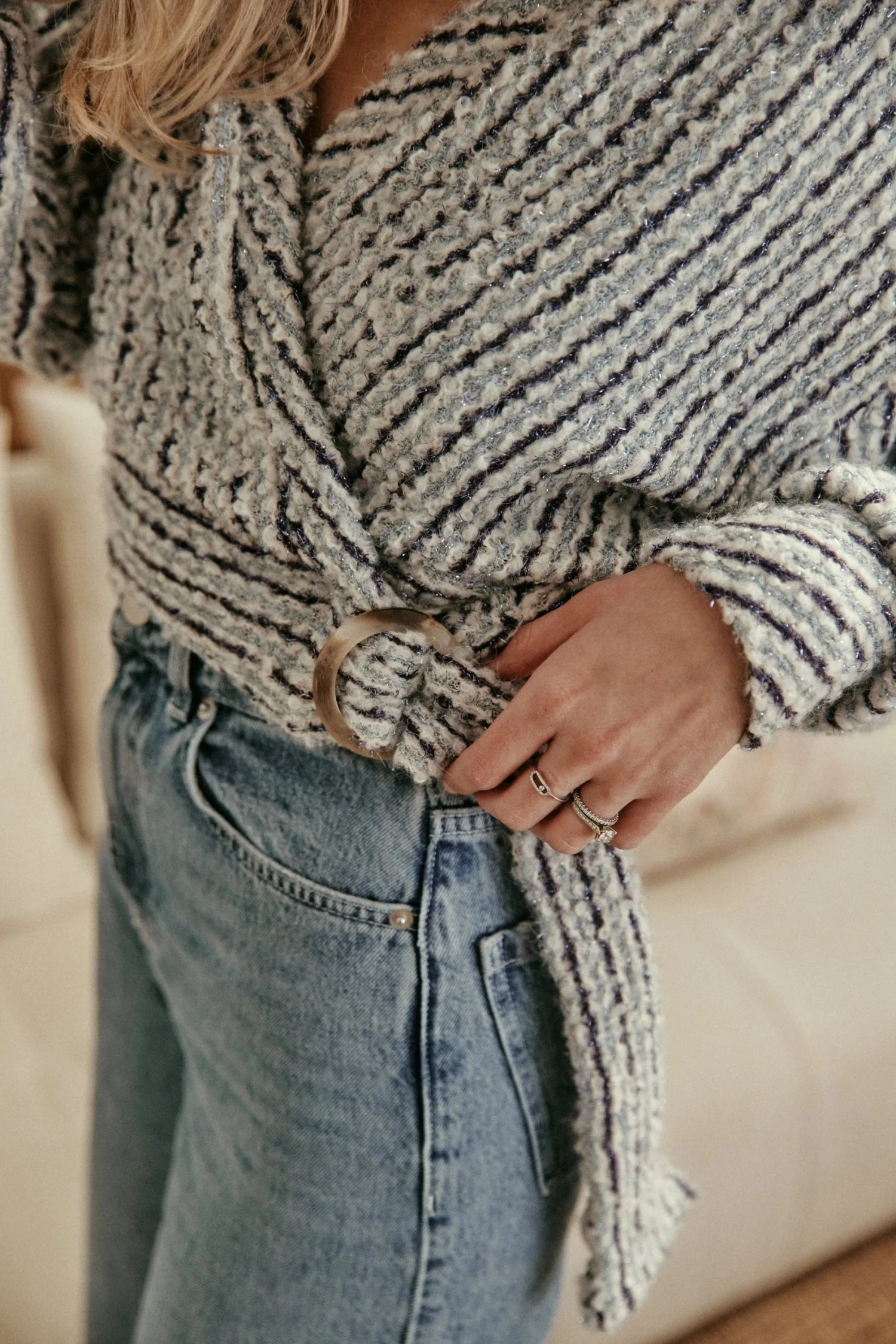 - Fermeture cache-cœur avec un bouton et une boucle écaille