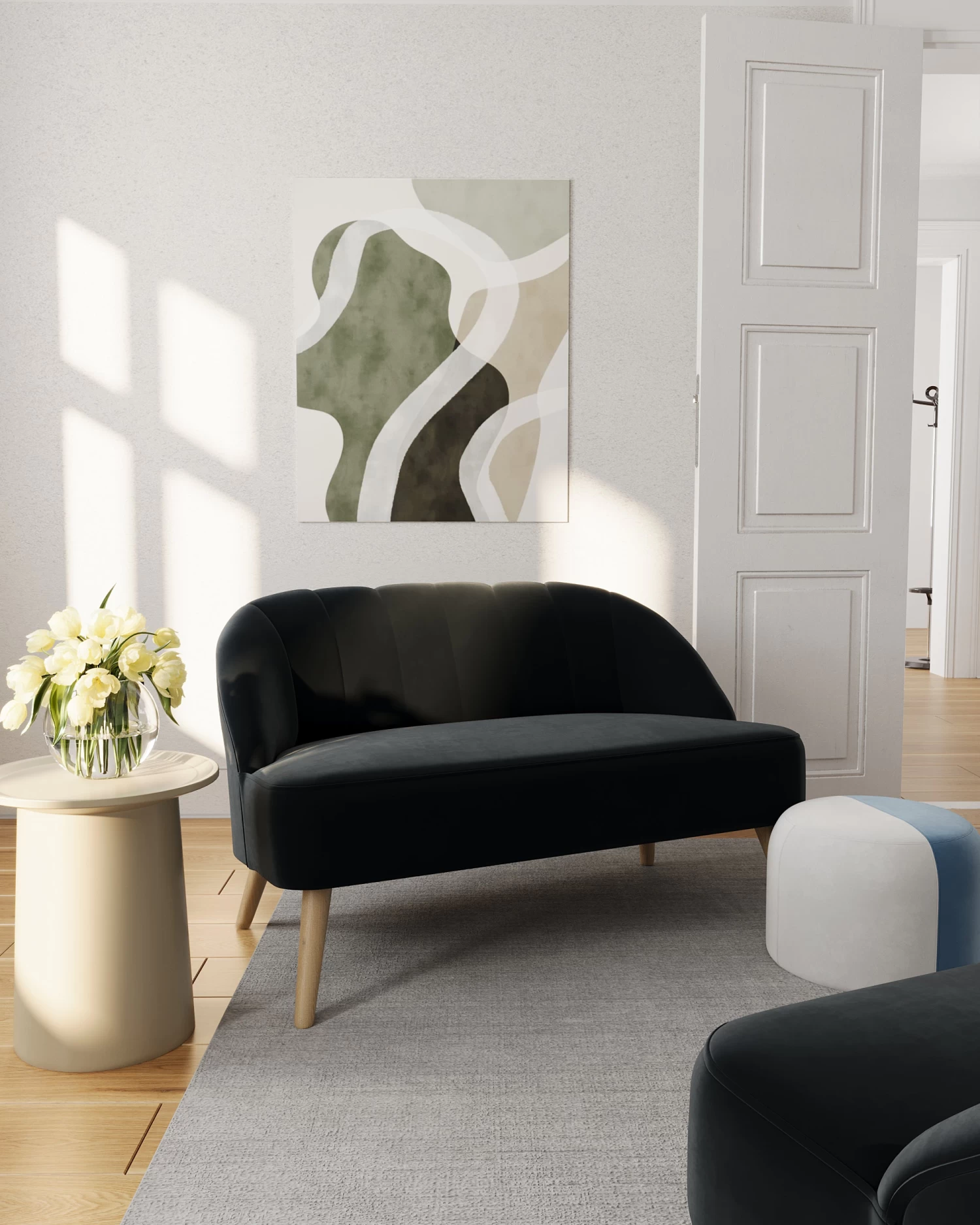 L’indémodable velours noir du canapé 2 places Aliénor
