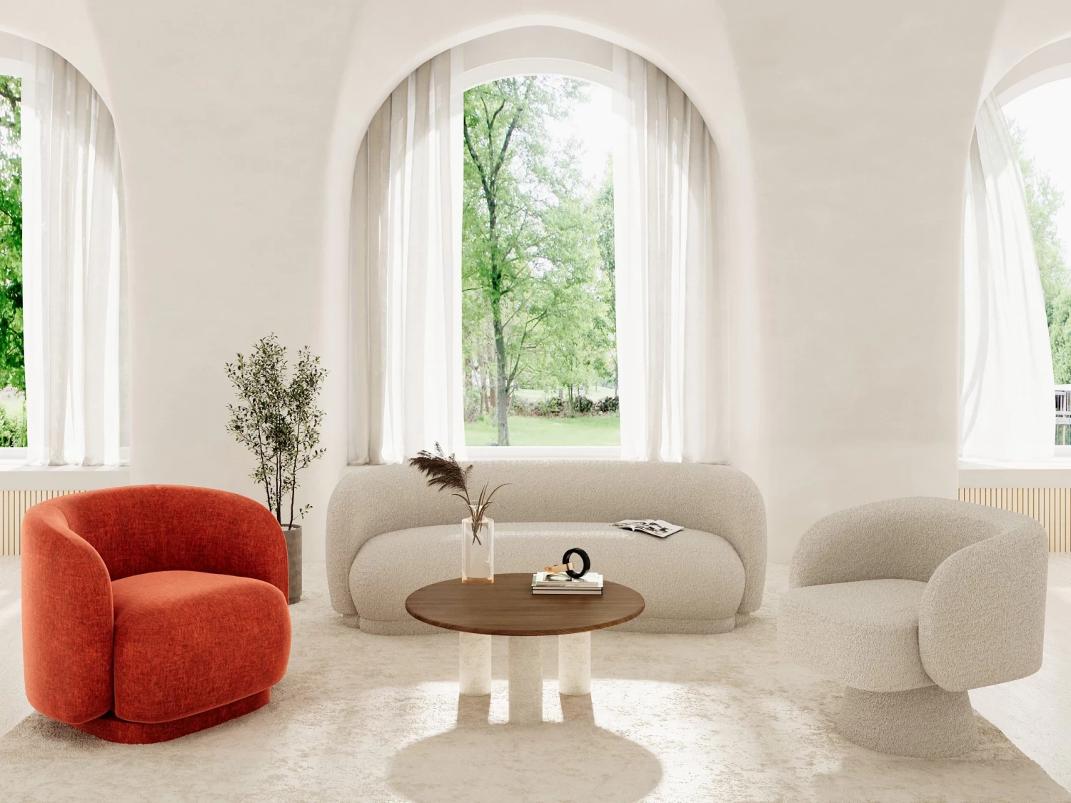 Si vous voulez frapper les esprits avec un salon qui est pile dans la tendance, alors, ce canapé incurvé effet bouclette est le bon. Entre sa silhouette arrondie qui accroche le regard et son adorable laine bouclée crème, douce et élégante, il se distingue haut la main.