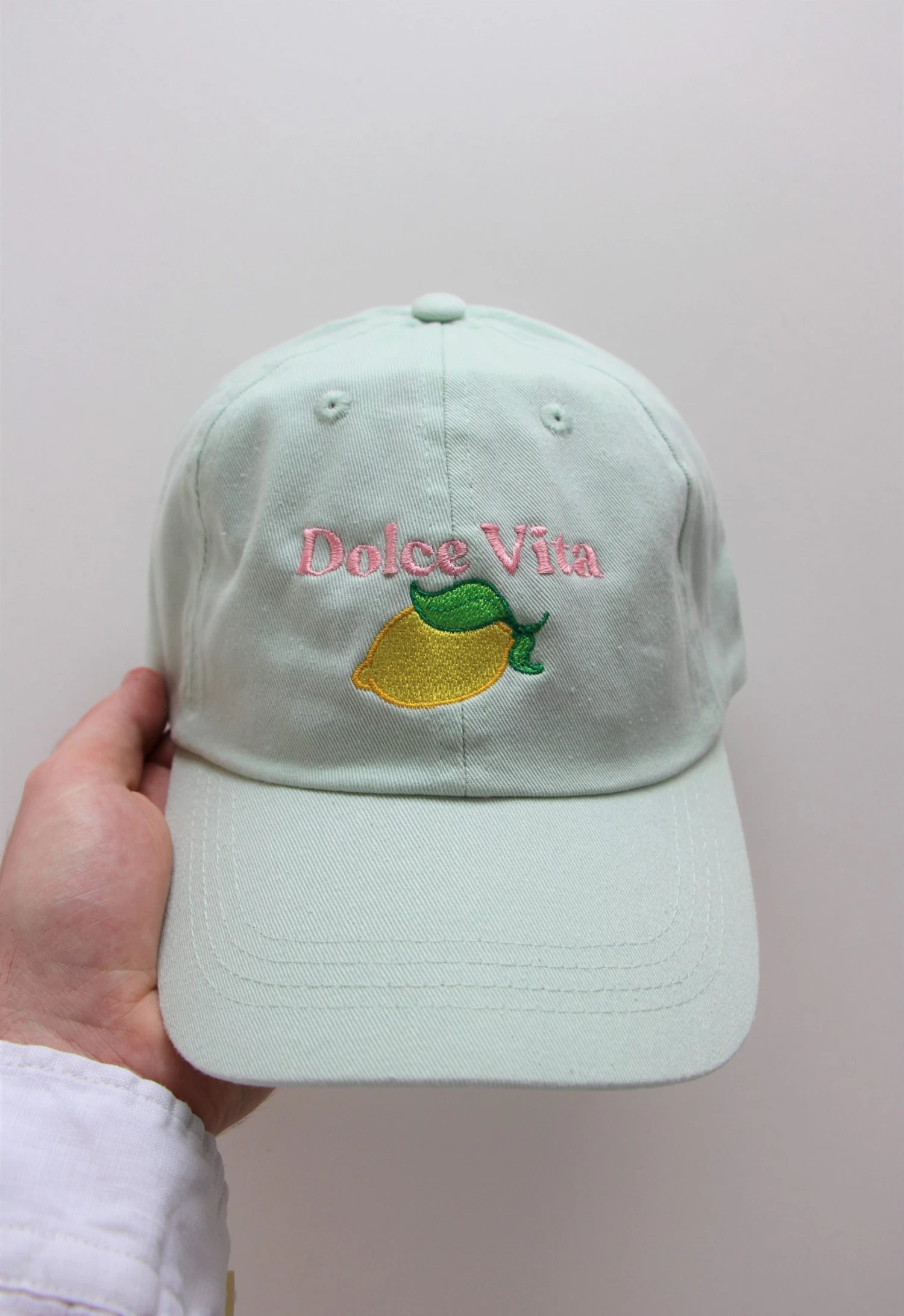 Casquette mixte « Dolce Vita » suivie d’un dessin de citron.