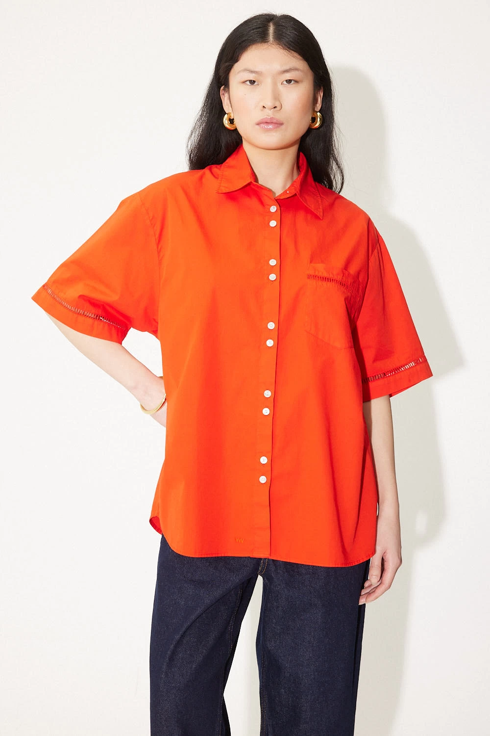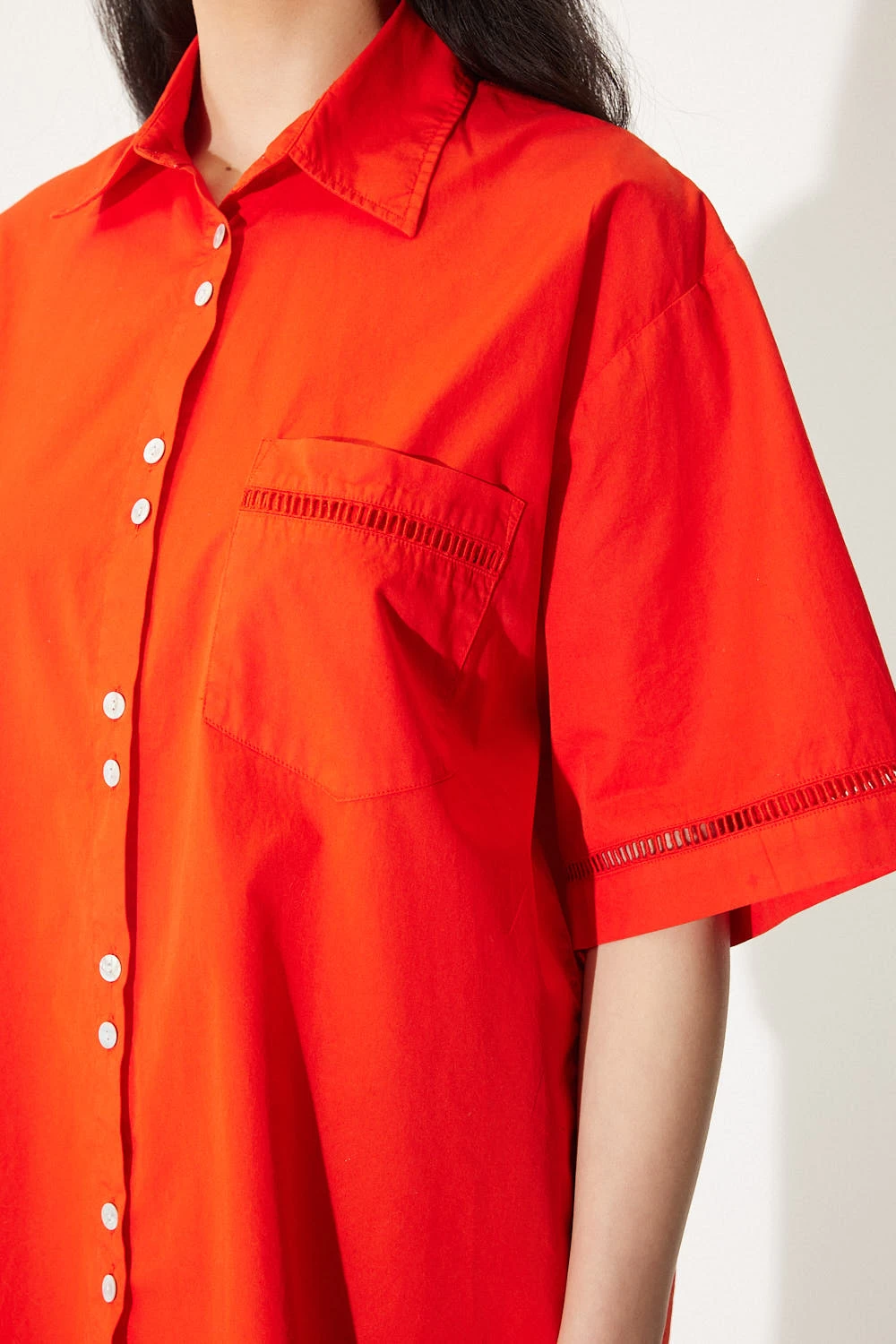 chemise rouge à manches courtes et détails fagotants
