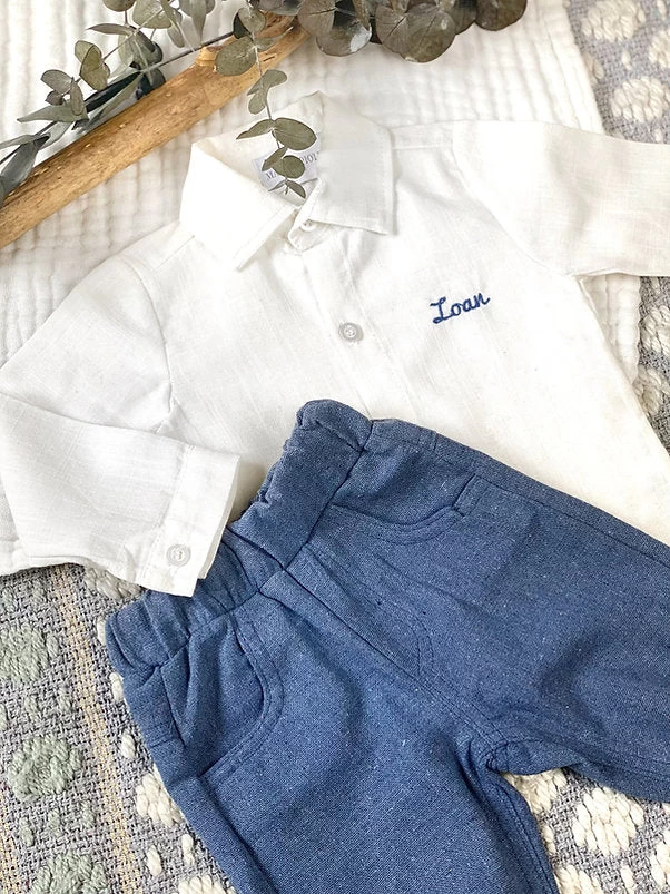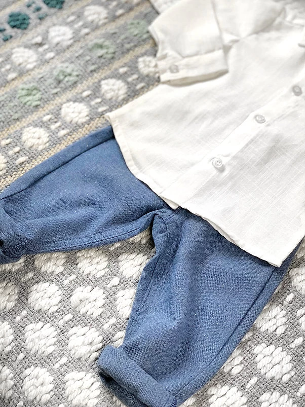 Un look très chic et tendance pour votre bébé garçon!On adore la coupe de ce joli pantalon chino habillé à associer avec cette magnifique chemise raffinée.