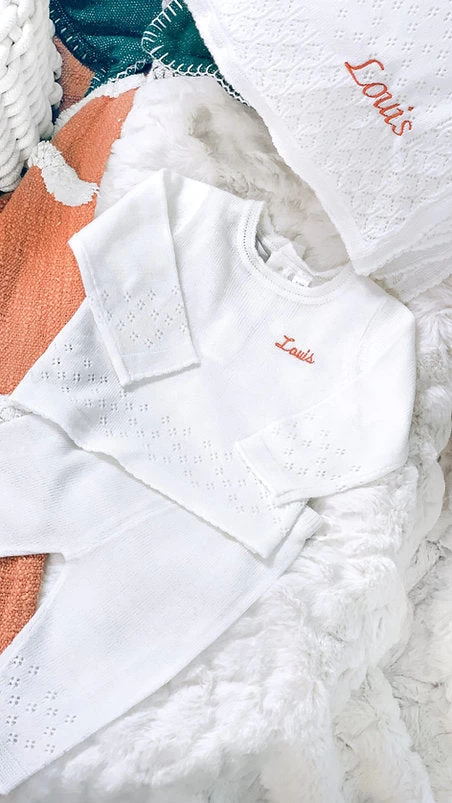 Idéal pour l’arrivée de bébé & ses premiers mois, ce coffret mixte est composé d’un bel ensemble et d’une couverture assortie. En tricot finement travaillé avec de somptueux détails, il fera un parfait cadeau de naissance. Bébé sera très chic pour recevoir la famille mais aussi pour passer de douces journées.