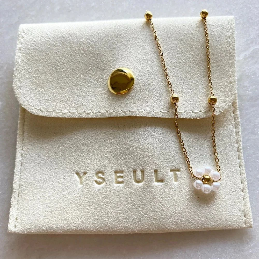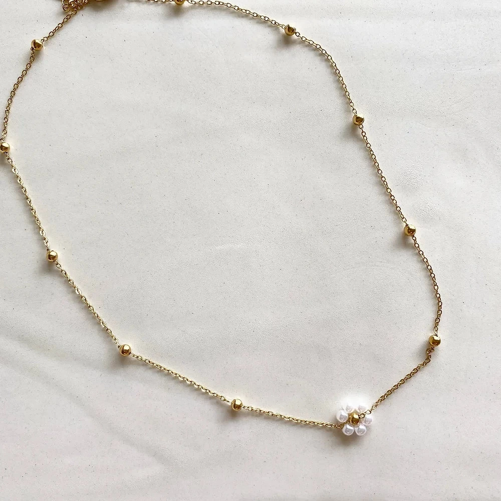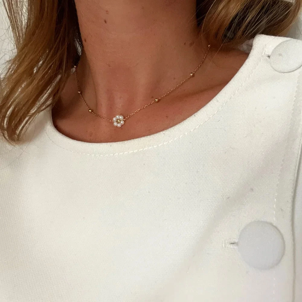 Collier en acier doré inoxydable & marguerite perles d’eau douce