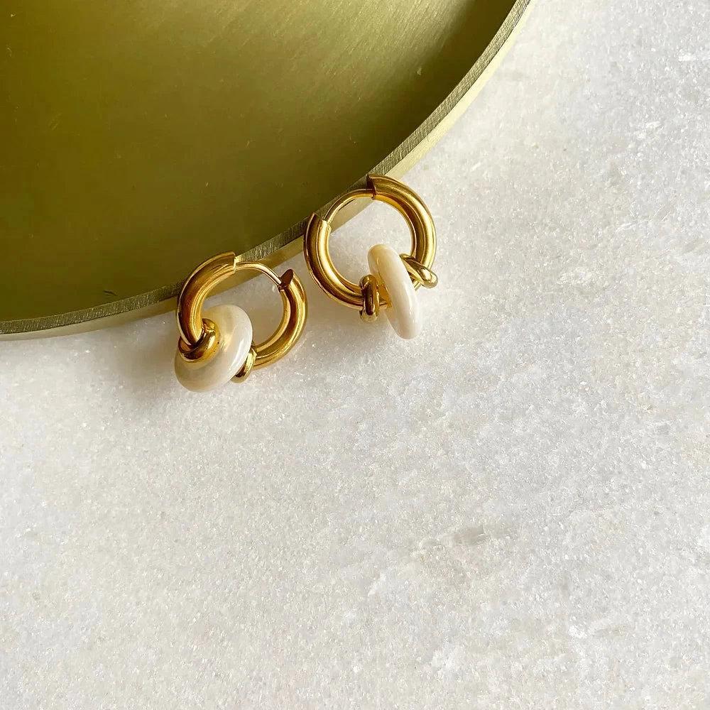 Créoles en acier doré inoxydable & nacre