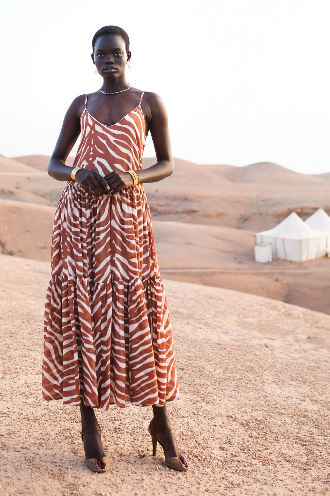 « Conçue pour donner vie à votre style, Dina a une allure charismatique. Le point fort de cette robe midi est sa coupe décontractée qui donne une autre dimension à la garde-robe sans effort. Il se compose de fines bretelles, d’une large encolure et d’une coupe décontractée qui se termine par des plis subtils au niveau de la taille et d’une jupe midi fluide. Pour une ambiance décontractée, associez-le à des baskets et à un sac de taille.