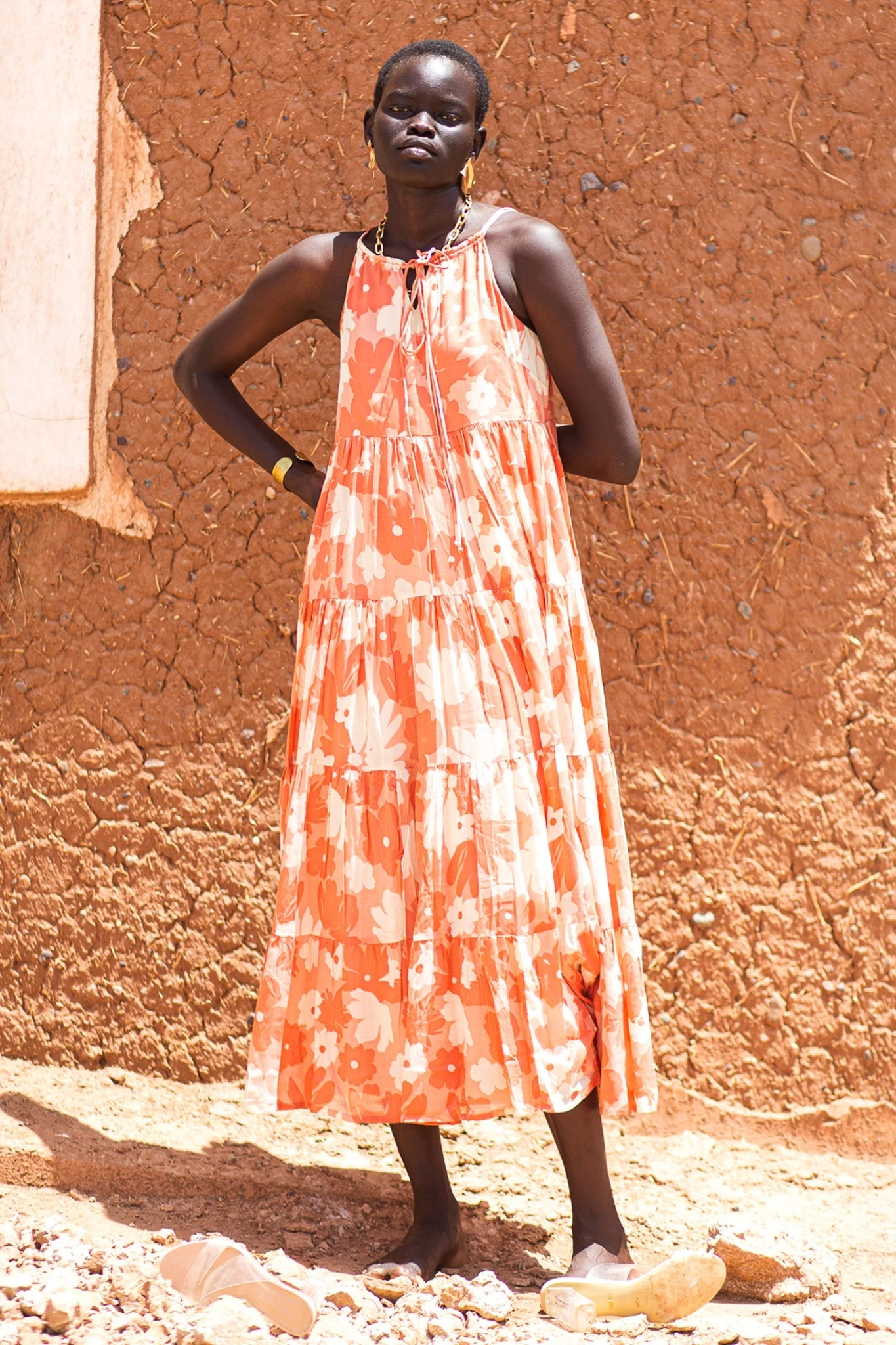 « Eliott capture les aventures de la côte sans effort. Léger et fluide, ce magnifique midi se transforme en une jupe en ligne A avec des empiècements étagés pour un tombé fluide. L’encolure est munie de cordons à nouer pour un look insouciant et les épaules sont dotées de fines bretelles spaghetti. Portez-la avec un chapeau et des chaussures à brides.