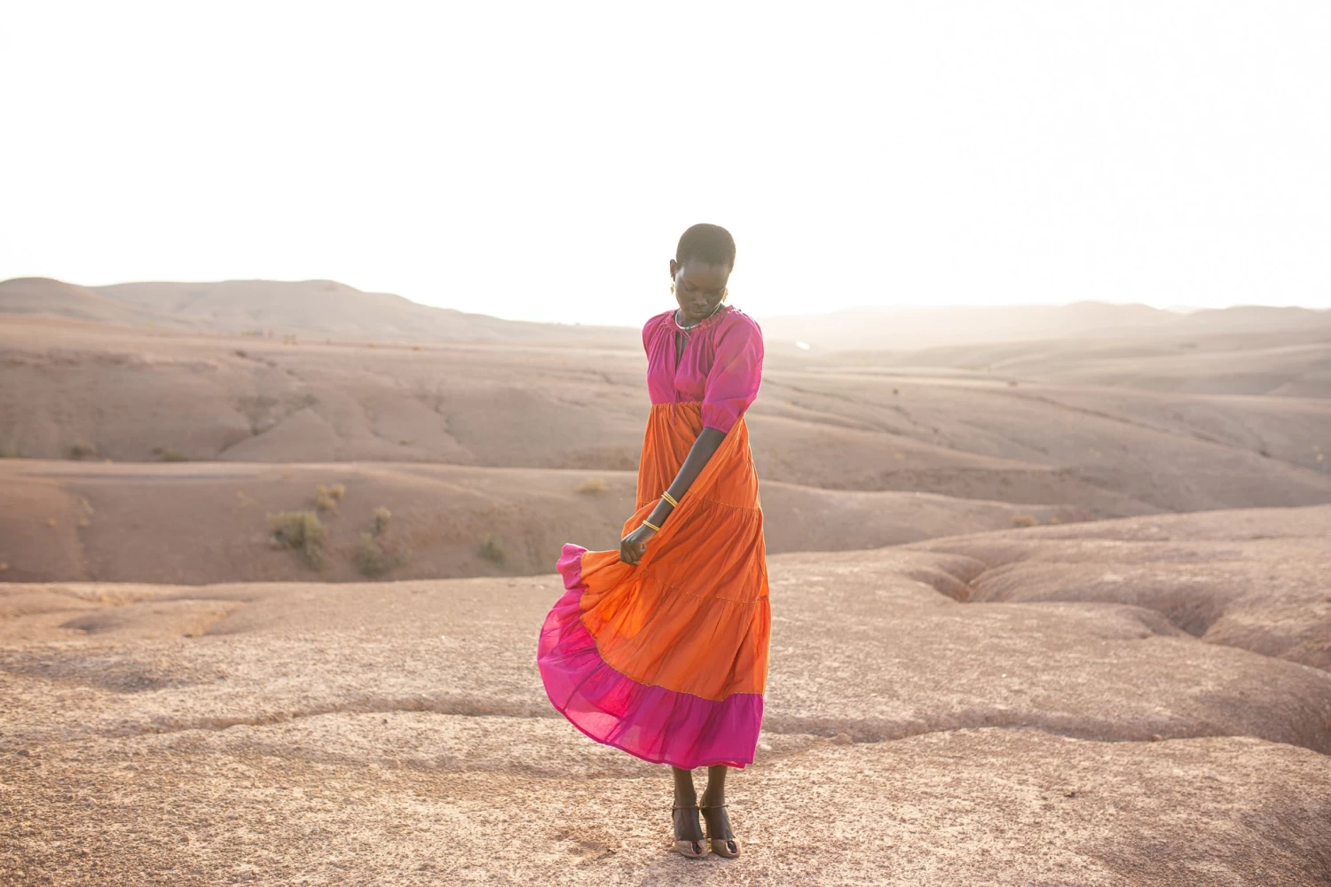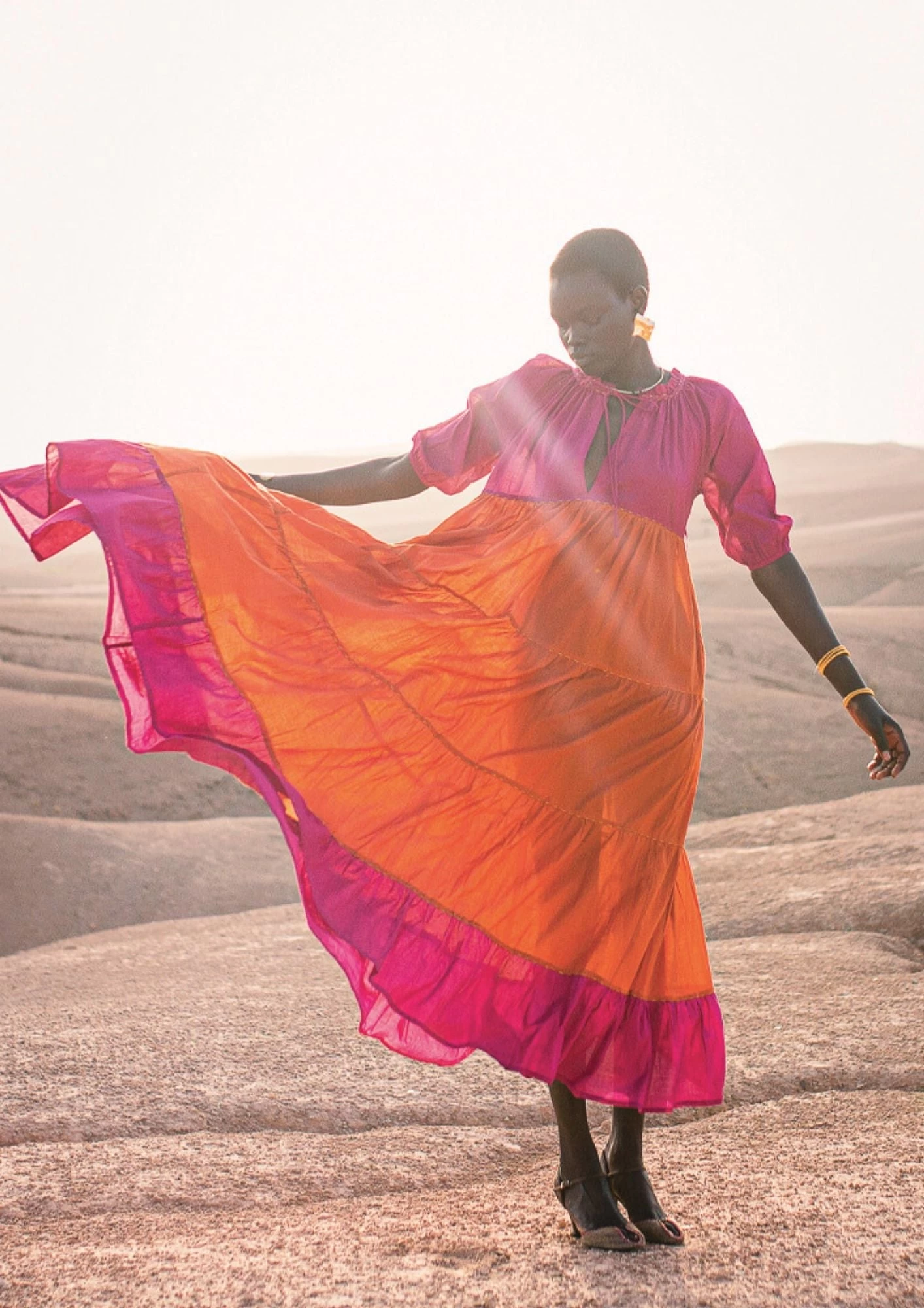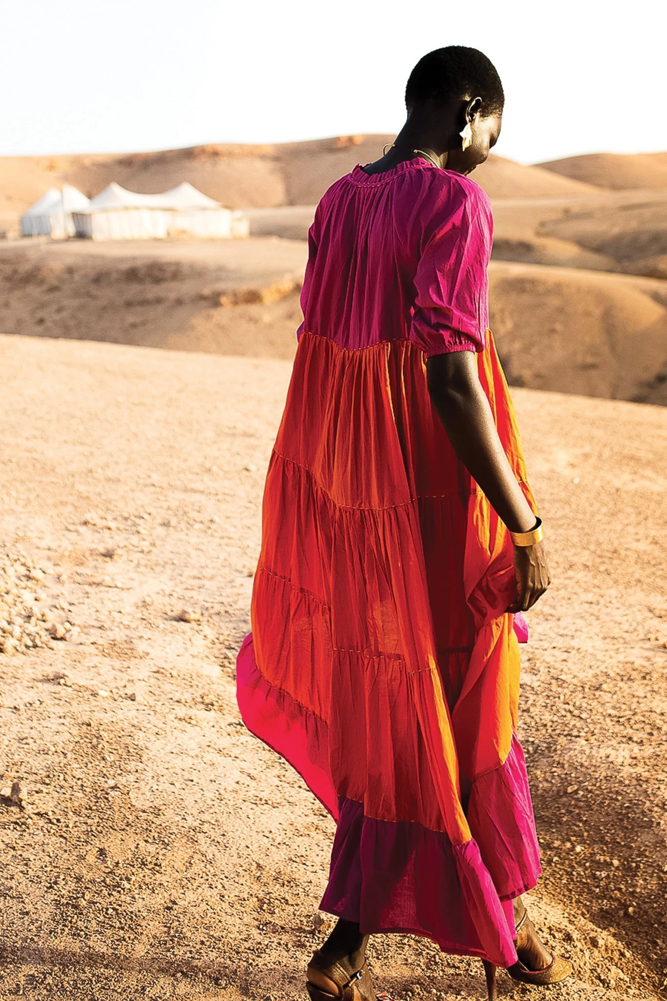 Emiri a un style contemporain avec un charme d’antan. Confectionné dans une étoffe légère, ce maxi free tombe dans un flair ample qui semble être un murmure contre la peau. L’encolure à volants donne de la dimension à un corsage autrement indéfini, doté d’une coupe en V et de manches courtes bouffantes. La jupe à volants met en valeur le savoir-faire artisanal de la beauté thaïlandaise. Vous pouvez l’assortir d’un charmant imprimé floral ou d’une palette de blocs de couleurs astucieuse.