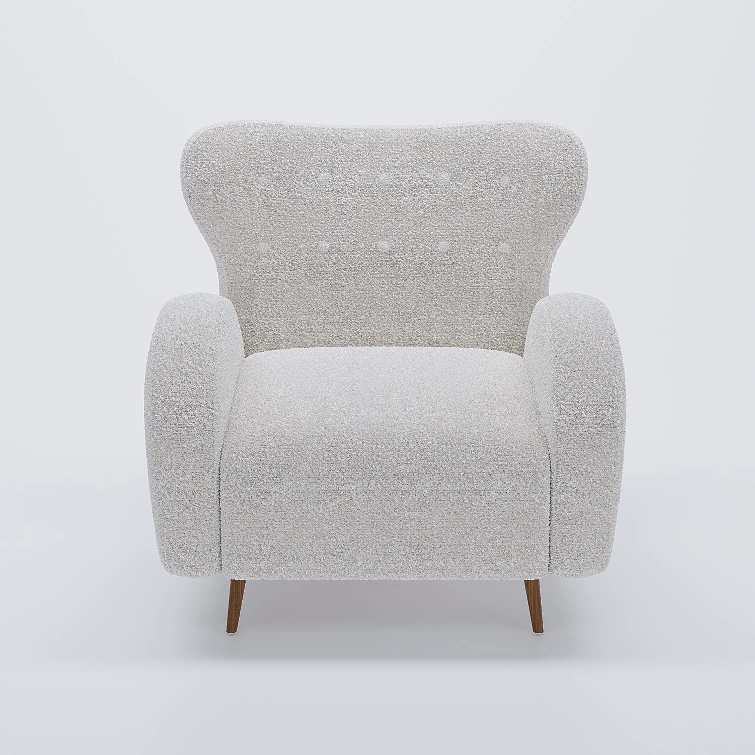 Le design du fauteuil bouclette Victoria réunit confort et style, une agréable performance qui vous donnera satisfaction. Ses deux oreilles ne sont pas seulement un argument esthétique. Additionnées aux vastes accoudoirs qui encadrent l’assise, elles vous donnent la délicieuse sensation d’être enveloppé dans une alcôve. C’est un break que personne n’osera déranger.