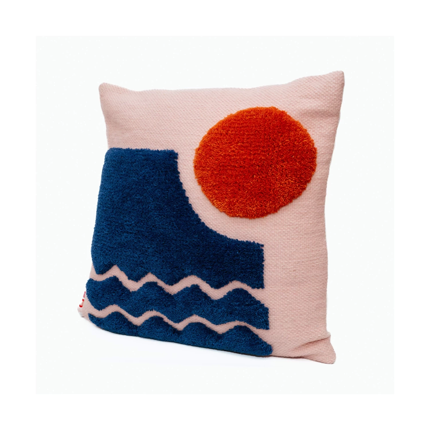 La housse de coussin en laine Rise & Shine est une création ColorTherapis. Entièrement tissée à la main, elle est réalisée à partir des chutes de tissus de nos tapis en laine.