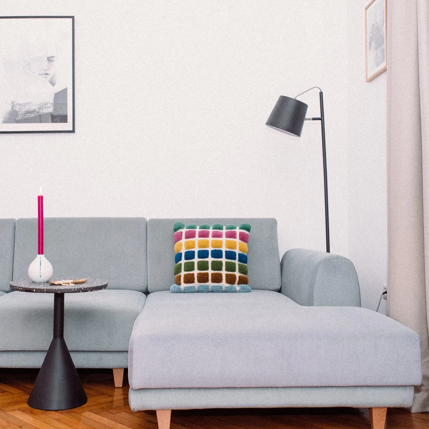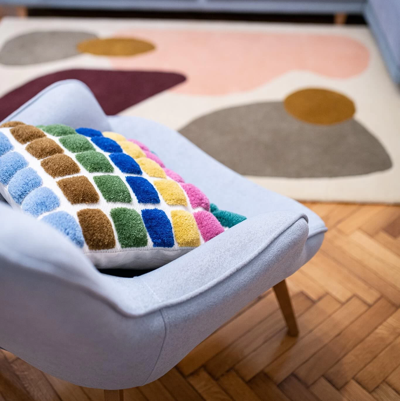 La housse de coussin en laine TETRIS est une création ColorTherapis. Entièrement tissée à la main, elle est réalisée à partir des chutes de tissus de nos tapis en laine.