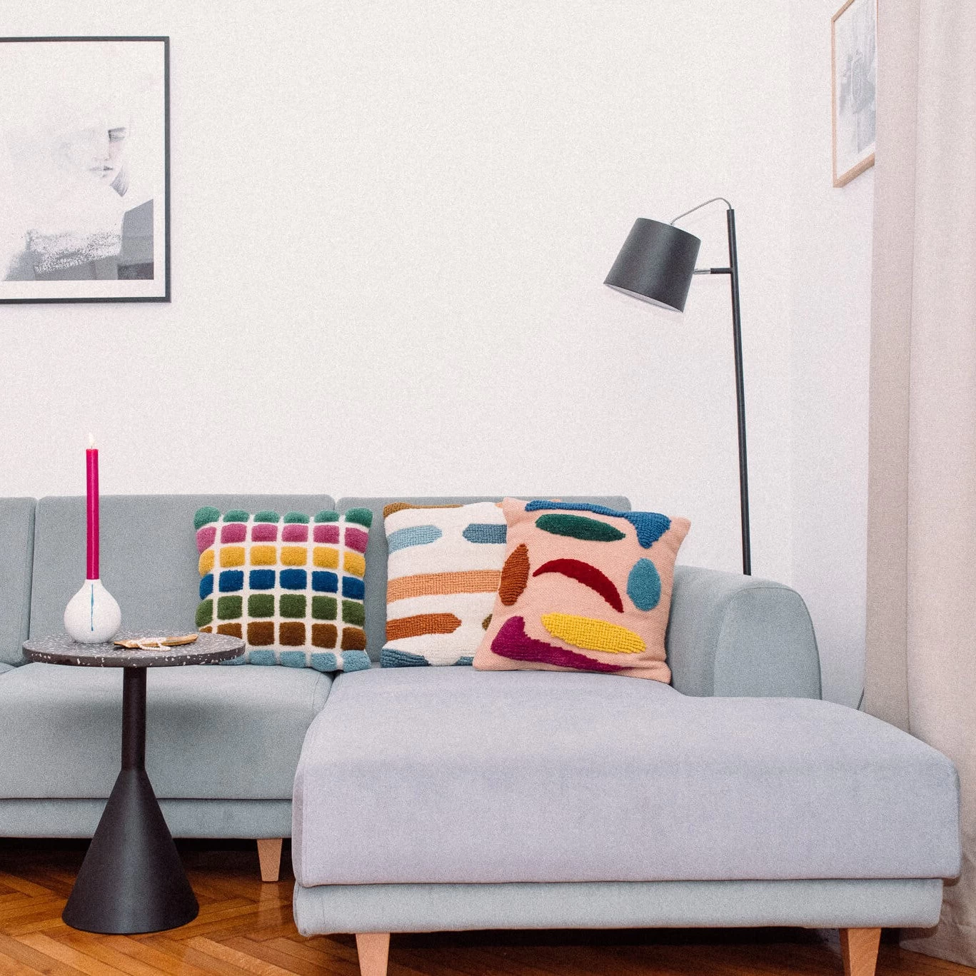 Chaque housse est travaillée avec différentes formes asymétriques et colorées, tout en relief pour une finition et un rendu unique.