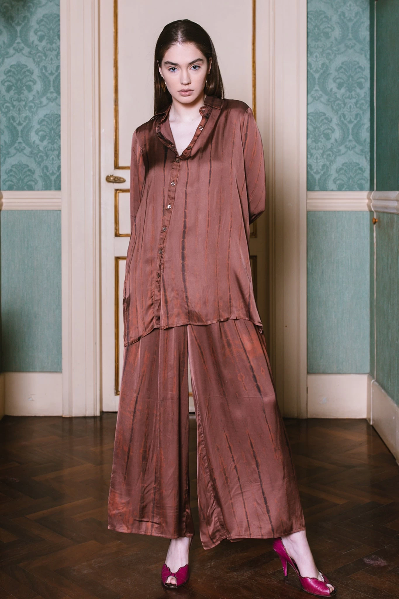 Le pantalon Julio est un classique de la mode. Fabriqué en satin avec un fini fluide, ce pantalon a un effet de soie douce au toucher qui procure confort et style. La teinture Grenada Tie and Dye ajoute une touche unique au look, avec une fermeture à glissière dorée pour plus de détails. Parfait pour toutes les occasions.