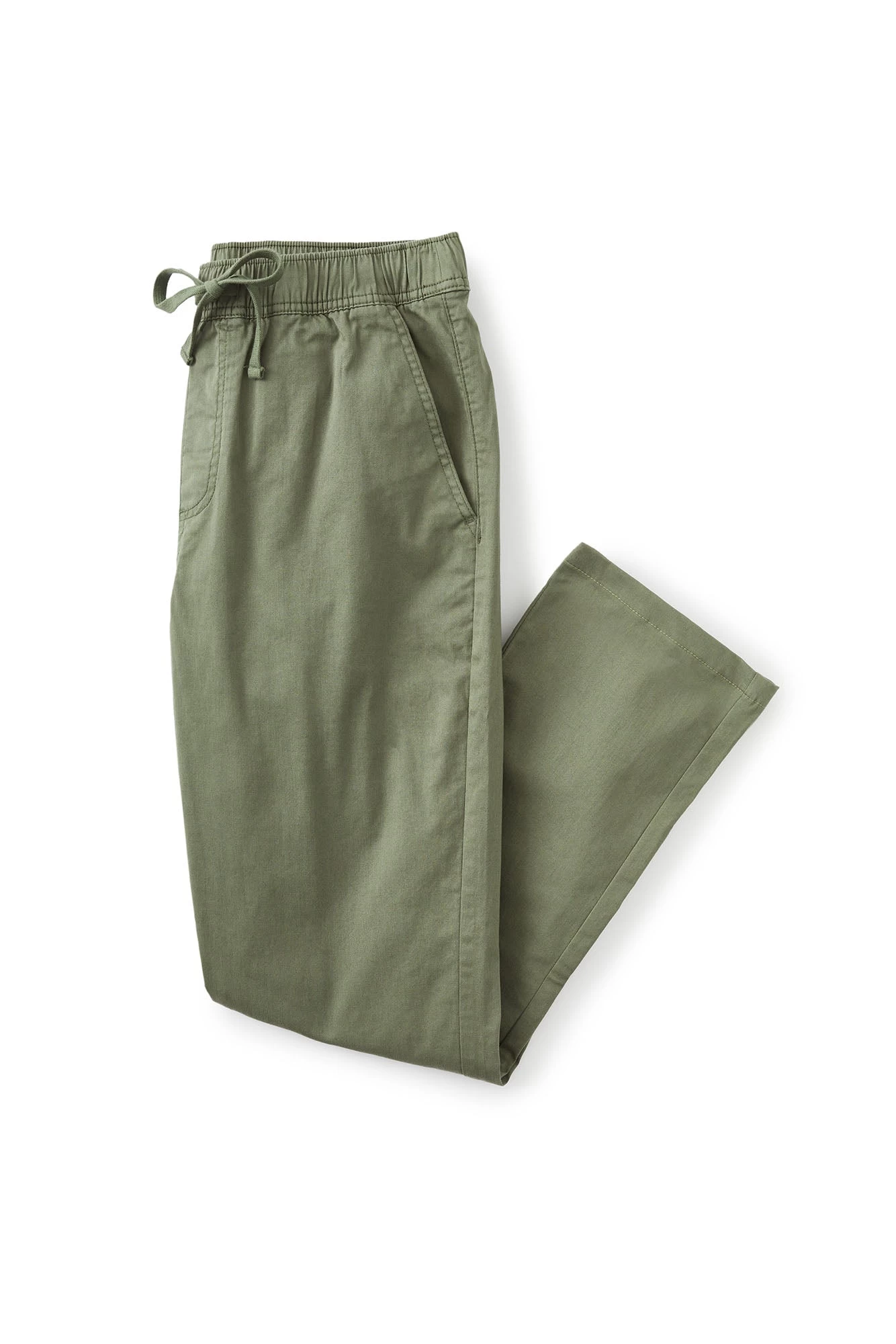 The Stand pant is made of 98% cotton 2% stretch twill with a light peach finish and our iconic enzyme wash, elastic waistband and drawcord, double welt back pockets and clean-finished seams and a 15″ leg opening on size 32.
