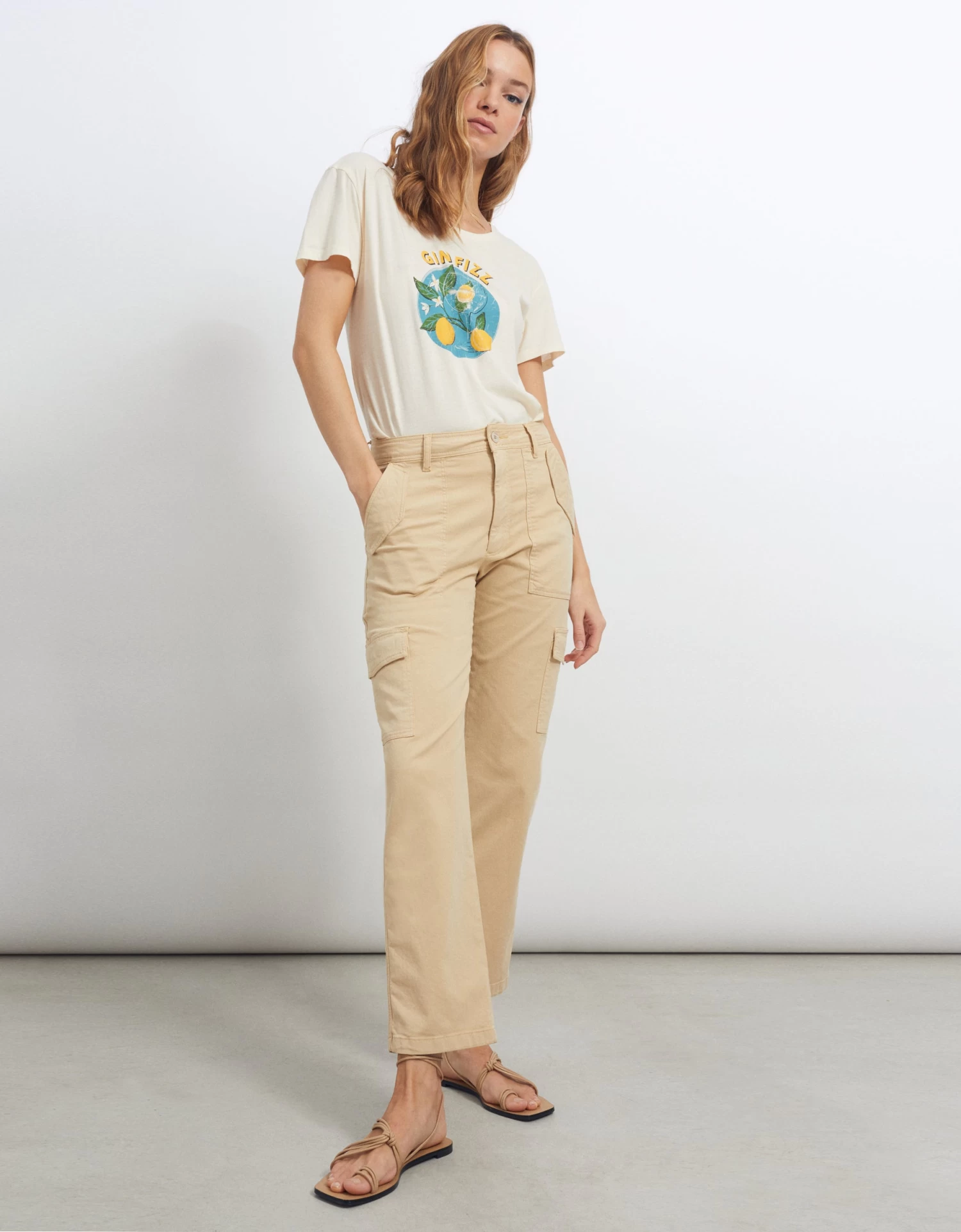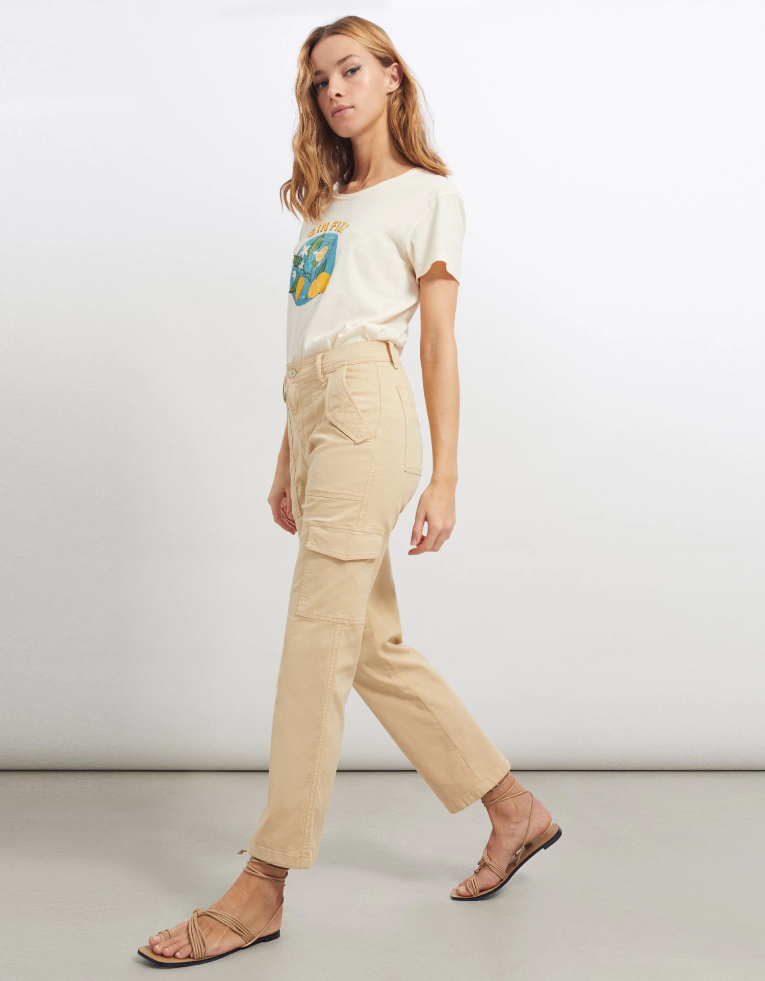 PHYLLIS COLOR, notre pantalon cargo léger pour une allure décontractée en été. Le cargo PHYLLIS COLOR coloris Light Sand. Un pantalon qui se veut confortable grâce à sa coupe qui s’adapte parfaitement à votre morphologie. On note ses poches cargo sur les côtés pour un style baroudeur.