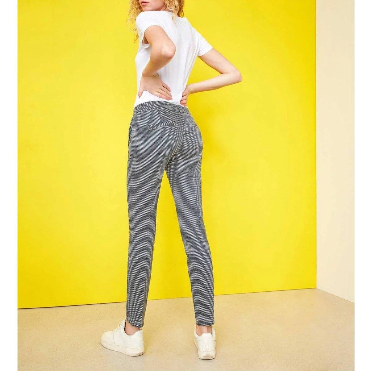 Le pantalon cigarette LIZZY FANCY a une coupe droite fuselée. Il est en en toile fantaisie avec des poches italiennes devant et des poches passepoilées au dos. Peut être porté avec le blazer Blair Fancy. Disponible en onze coloris. Taille du 24 au 32.