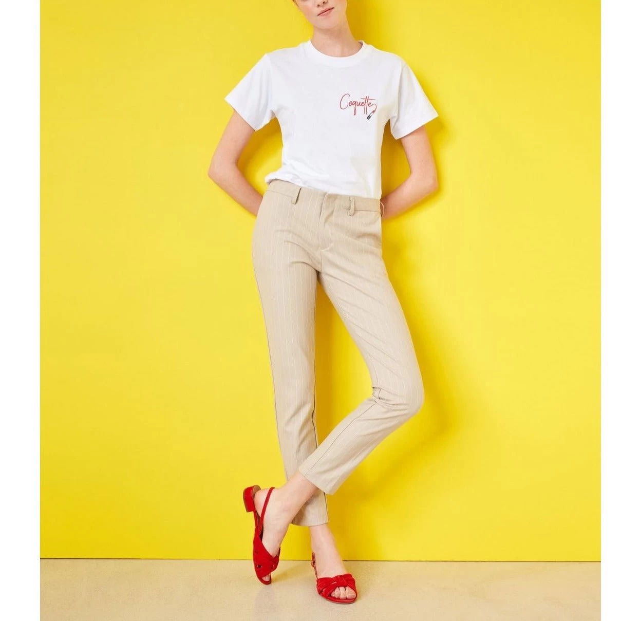 Le pantalon cigarette LIZZY FANCY a une coupe droite fuselée. Il est en en toile fantaisie avec des poches italiennes devant et des poches passepoilées au dos. Peut être porté avec le blazer Blair Fancy. Disponible en onze coloris. Taille du 24 au 32.