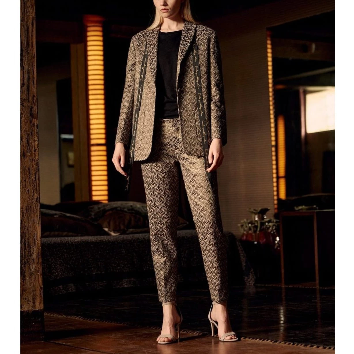 Elle se glisse parfaitement avec le pantalon cigarette LIV FANCY du même motif pour un total look tailleur.