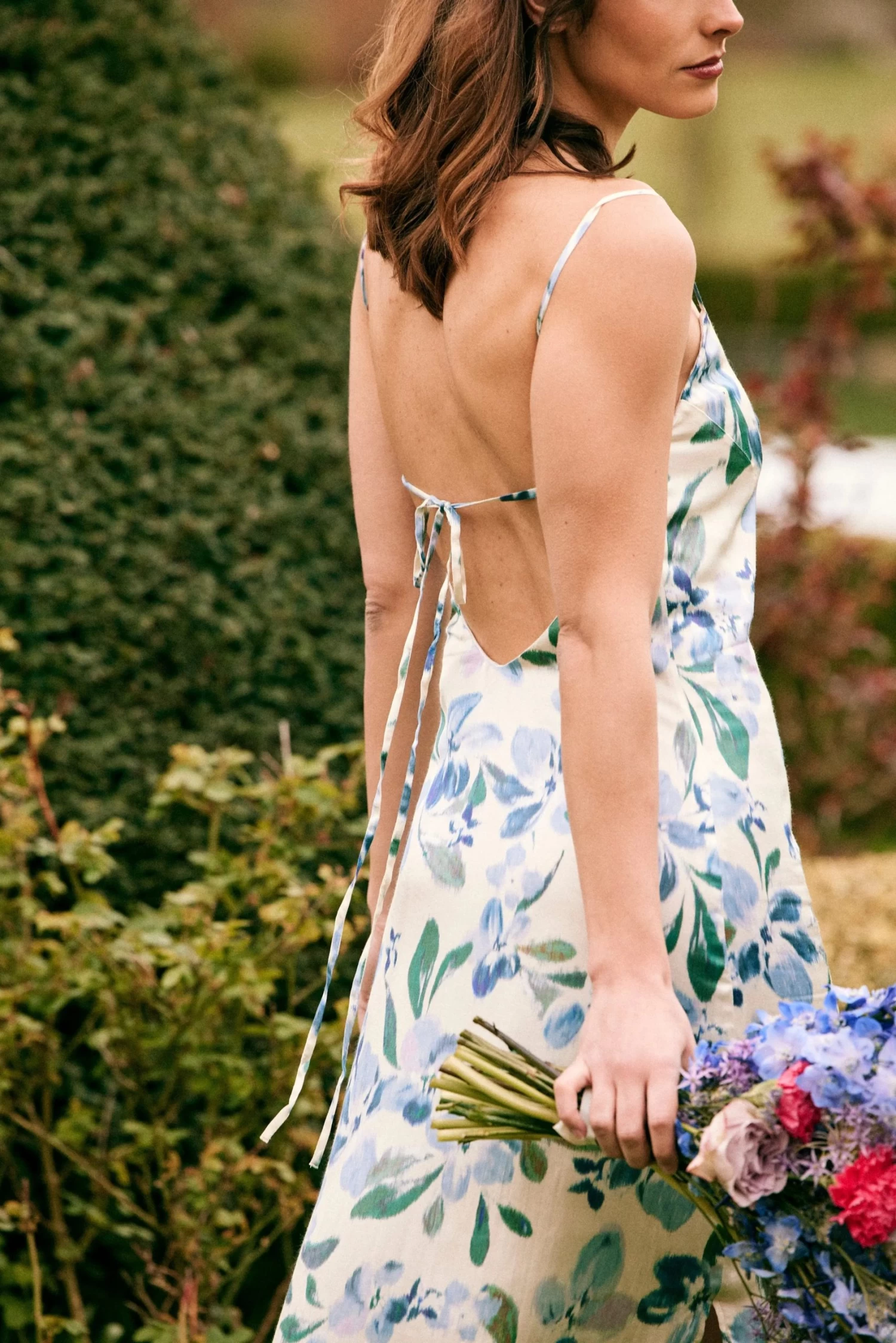 - Robe longue avec bretelles nouées dans le dos