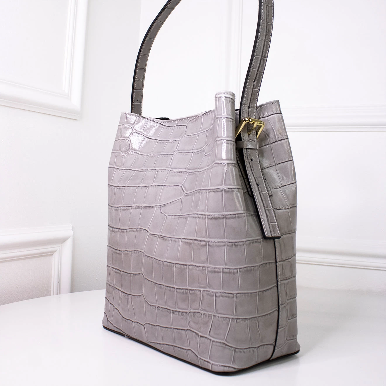 Sac seau. Ouverture bouton aimanté. Intérieur : petite poche
