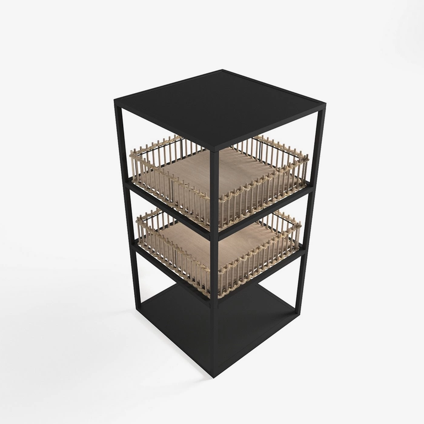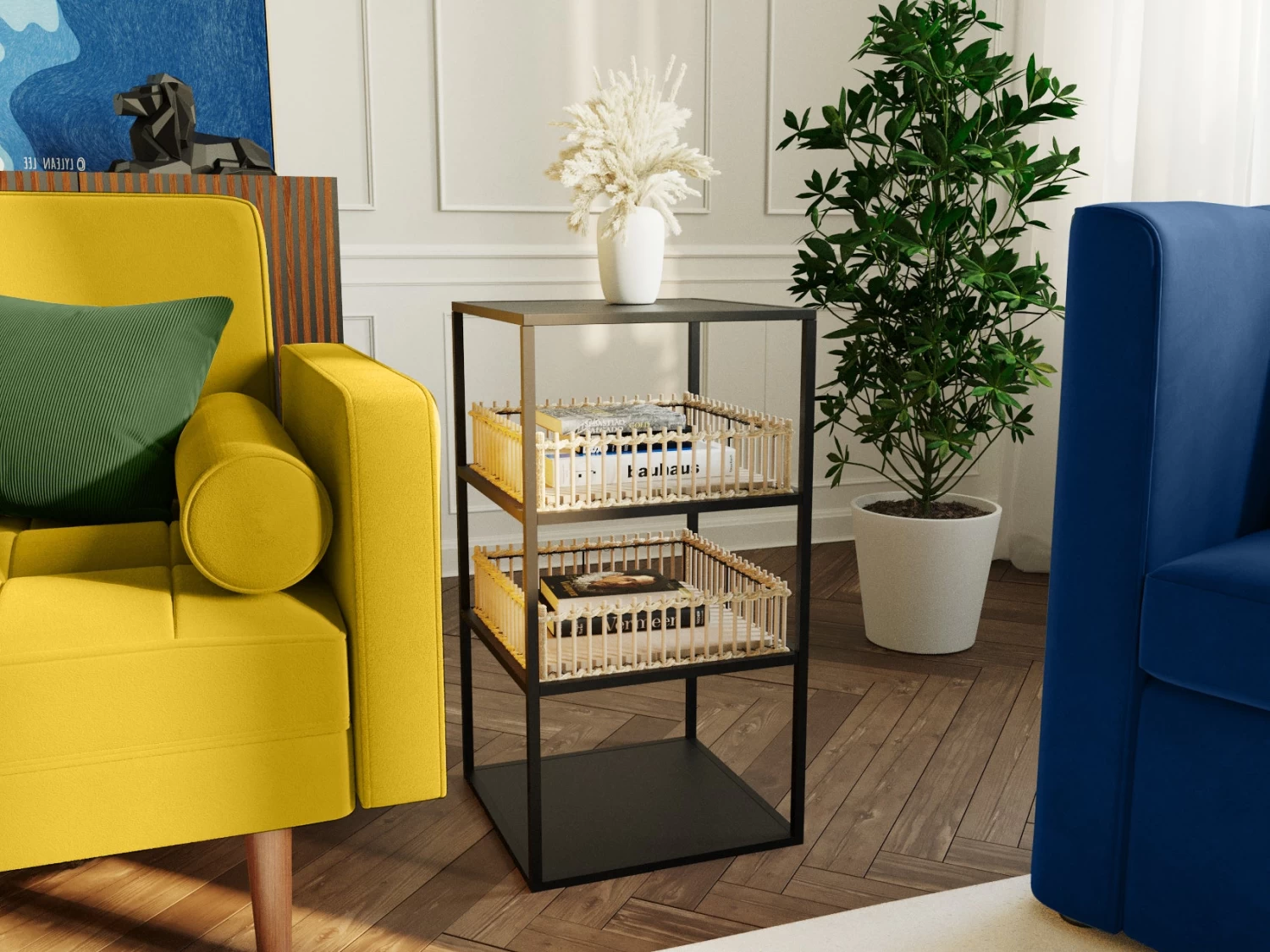 Esthétique et pratique, dotée d’un chic tout particulier, la sellette design Lazare s’affiche avec jubilation pour sublimer et votre décoration intérieure et vos objets déco, lampe de caractère, plante verte. Une sellette en métal noir et étagère en bambou créative, qui sait faire monter en grade votre intérieur.