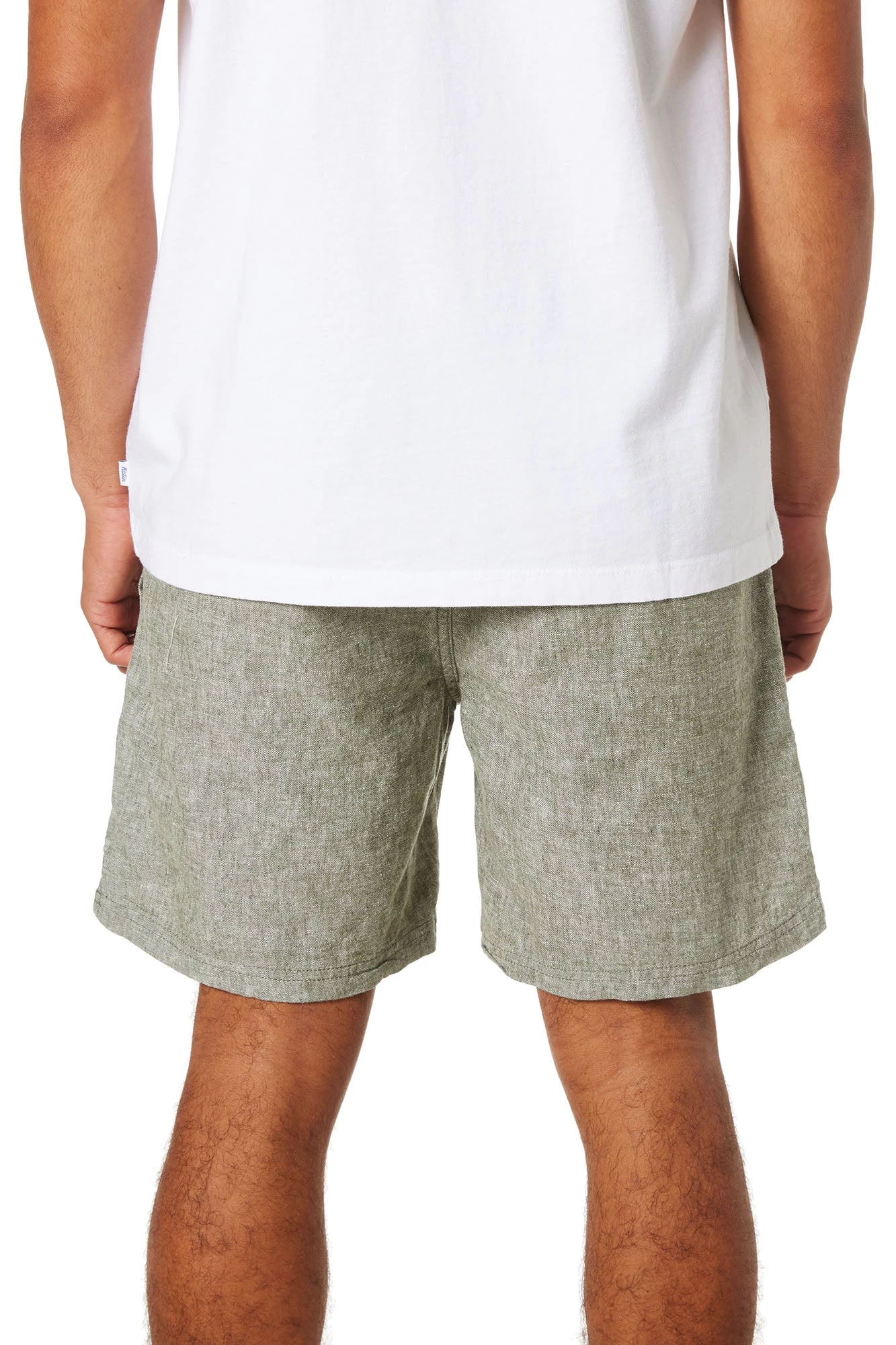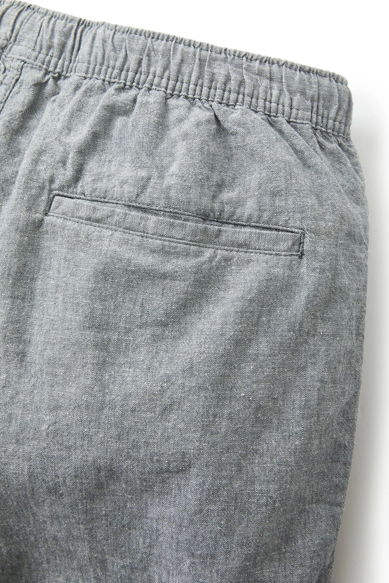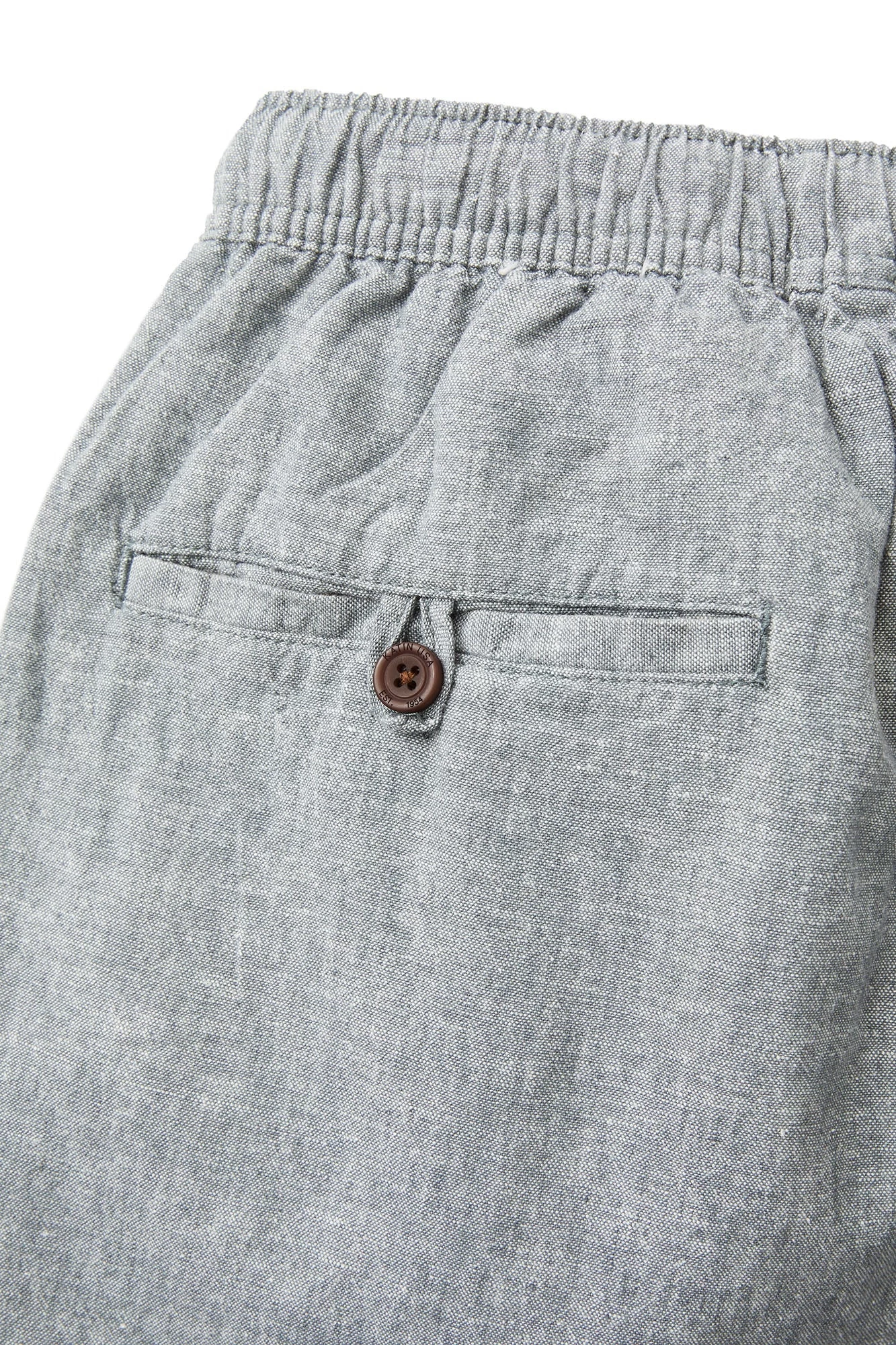Made from a 75% cotton 25% linen-blend fabric, The Isaiah Local Short is both comfortable and good-looking. Utilizing our popular 17″ outseam ‘Local Short’ block, The Isaiah features front welt side seam pockets, elastic waistband with drawcords, back welt pockets, faux fly, and internal diagonal pinstripe binding.
