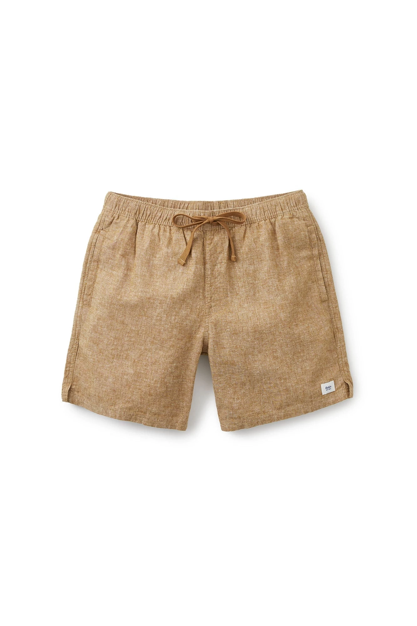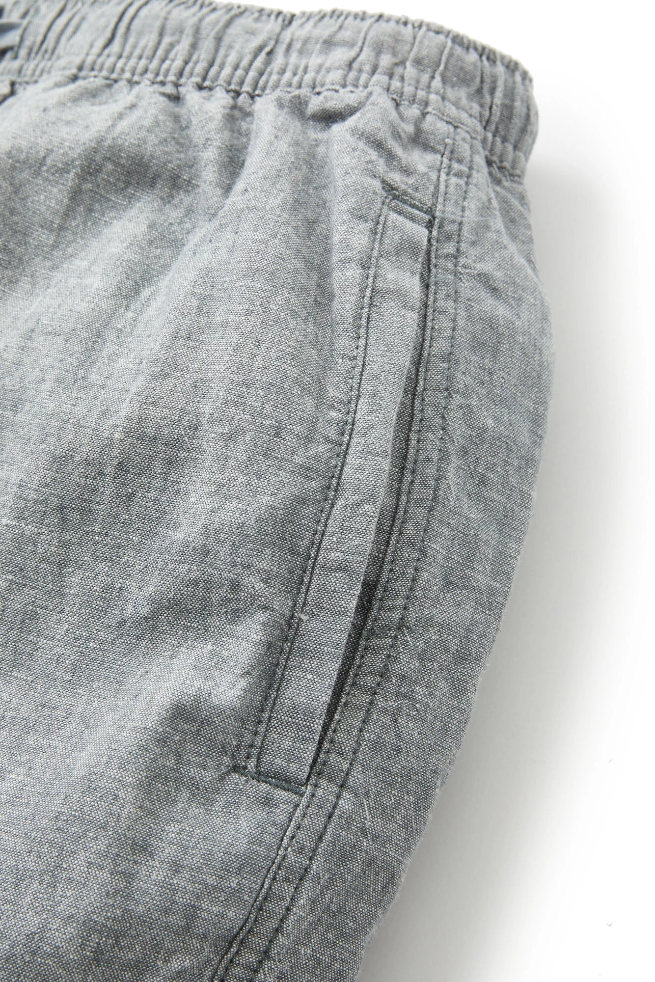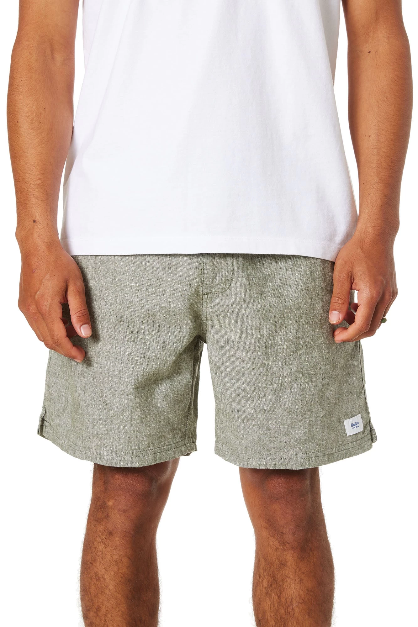 Made from a 75% cotton 25% linen-blend fabric, The Isaiah Local Short is both comfortable and good-looking. Utilizing our popular 17″ outseam ‘Local Short’ block, The Isaiah features front welt side seam pockets, elastic waistband with drawcords, back welt pockets, faux fly, and internal diagonal pinstripe binding.