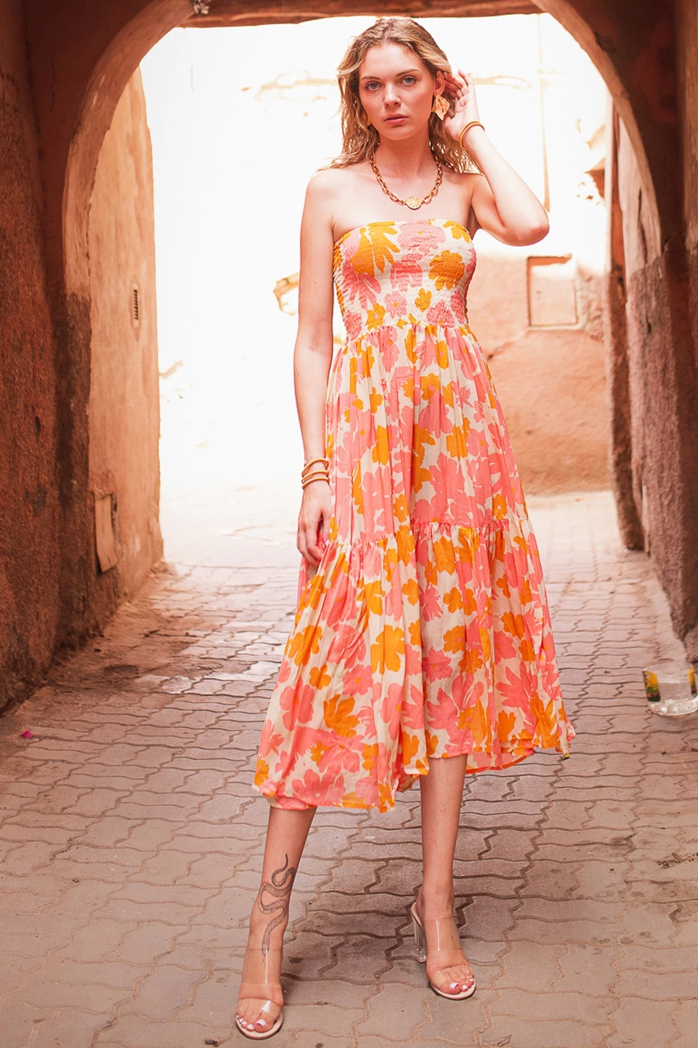 « Sofia est une pièce maîtresse qui se porte de jour comme de nuit, sans effort. Réalisé dans un imprimé exclusif à la maison, ce pantalon midi apporte de l’élégance grâce à une coupe qui met en valeur la silhouette. Il se compose d’un corsage à smocks et d’une encolure droite qui met en valeur vos courbes avant de tomber sur un midi fluide doté de fronces à la taille et d’un empiècement en gradins. Portez-la avec un minimum d’accessoires pour la mettre en valeur.