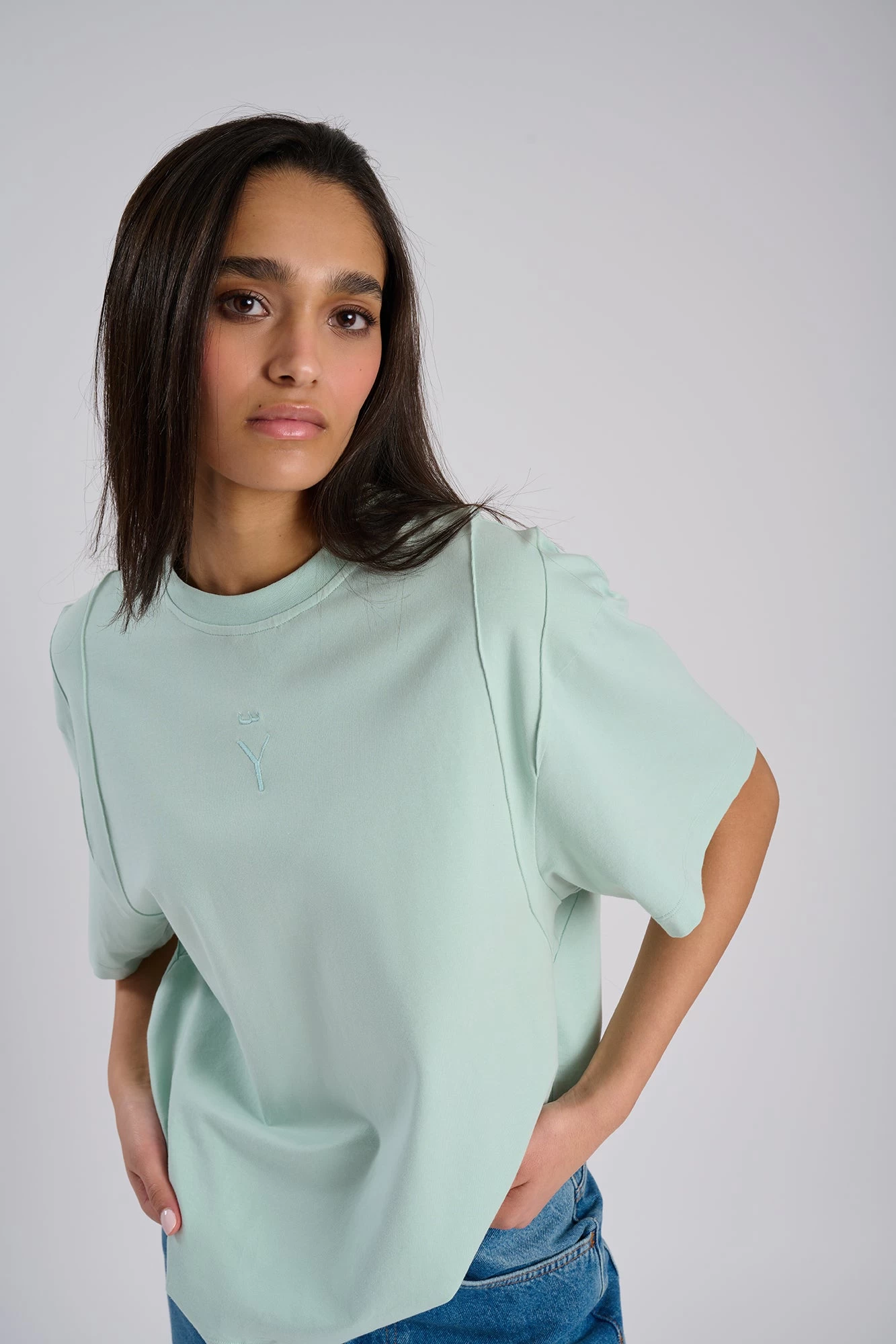 Broderie sur le devant en ton sur ton