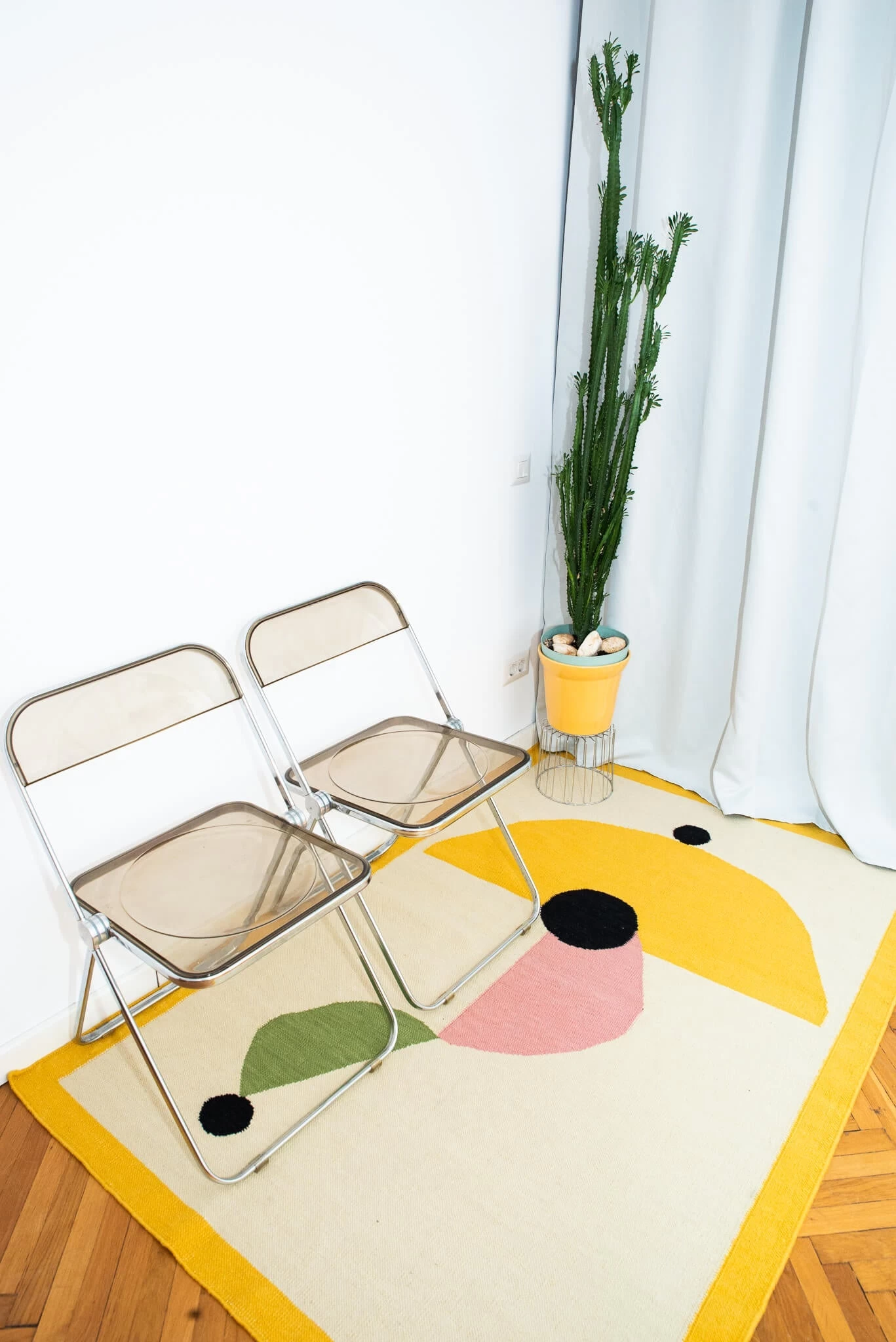 Le tapis en laine Asian Umbrella ( tissé à plat) est une création ColorTherapis. Il est entièrement réalisé à la main, avec un tissage de la laine à plat.